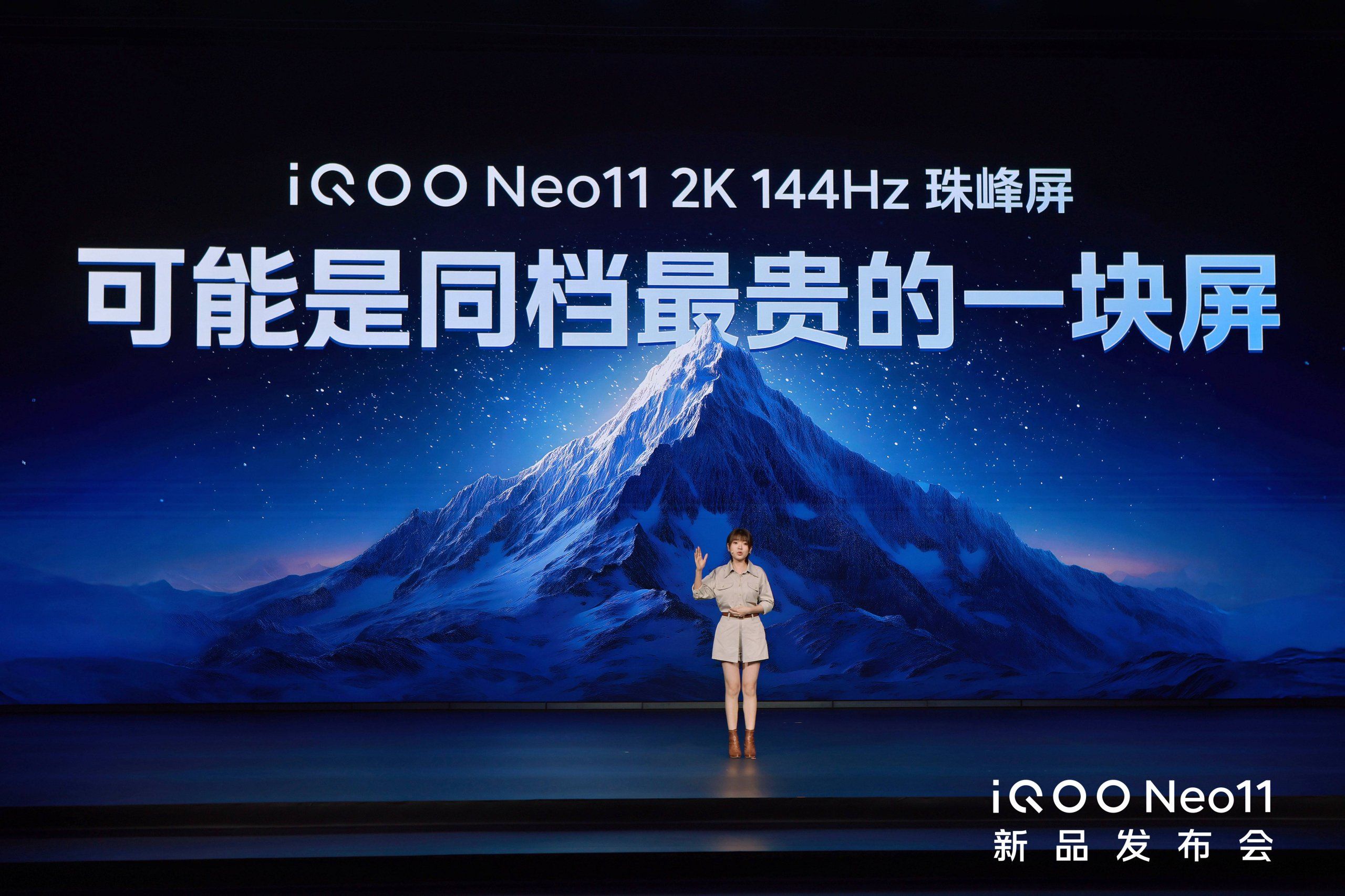 สเปคหน้าจอของ iQOO Neo 11 เลือกใช้เป็นพาเนลหน้าจอ AMOLED เทคโนโลยี LTPO 8T วัสดุหน้าจอ BOEW Q10+ ขนาด 6.82 นิ้ว อัตรารีเฟรช 144Hz ความละเอียด 2K รองรับการแสดงผล HDR 10+ ติดตั้งมาพร้อมกับเซนเซอร์สแกนลายนิ้วมือใต้หน้าจอแบบอัลตาโซนิค และกล้องหน้าแบบเจาะรู 16MP