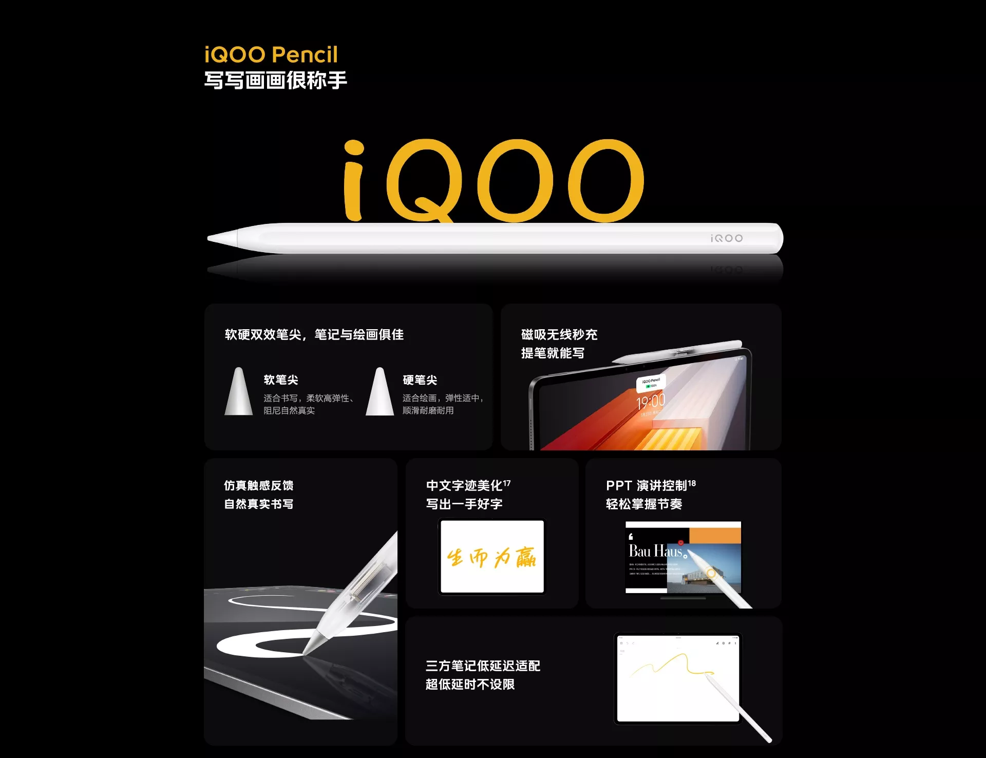 แท็บเล็ตรุ่นนี้จัดเต็มทั้งด้านความบันเทิง และงานสร้างสรรค์ เพราะให้ลำโพงระบบเสียงรอบทิศทางมาทั้งหมด 6 ตัว ประกอบไปด้วยลำโพงแบบ Full Range 4 ตัว และลำโพงทวีตเตอร์ความถี่สูง 2 ตัว ให้เสียงกระหึ่มไม่ว่าจะเล่นเกม หรือดูหนัง แถมด้านหลังยังมี Magnet Connector รองรับการต่อเคสคีย์บอร์ดเสริม และรองรับปากกา Stylus iQOO รองรับแรงกด 4096 ระดับ และเขียนแบบเอียงได้ 26 องศา สามารถแปะตัวปากกาเพื่อชาร์จไร้สายผ่านตัวเครื่องได้