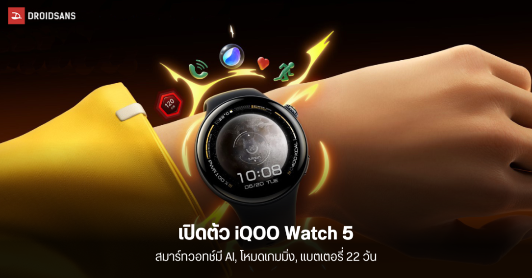 นอกจากแท็บเล็ตเกมมิ่งตัวแรง 2 รุ่นในตระกูล iQOO Pad5 Series แล้ว vivo ยังเปิดตัวสมาร์ทวอทช์รุ่นใหม่ iQOO Watch 5 อีกด้วย โดยนาฬิกาอัจฉริยะรุ่นนี้มาพร้อมระบบปฏิบัติการใหม่ Blue River OS ที่ใช้ AI มาร่วมในการทำงาน รวมถึงมีโหมดเกม eSports และมีอายุการใช้งานแบตเตอรี่สูงสุด 22 วัน ต่อการชาร์จเพียง 1 ครั้ง