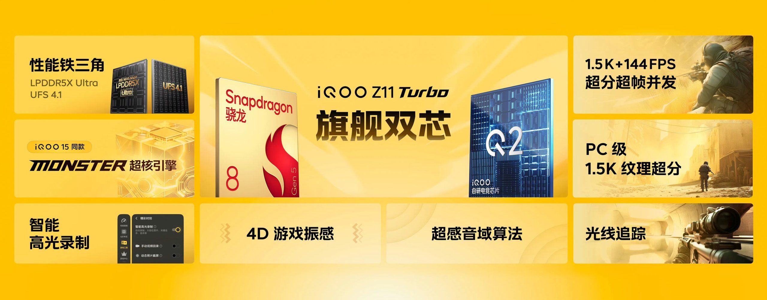 ชิปประมวลผลกราฟิกแยก Q2 ที่ปกติจะมีอยู่ในซีรีส์เรือธงของ iQOO เท่านั้น ช่วยให้เล่นเกมที่ 144 FPS พร้อมความคมชัดของภาพ 1.5K ระดับเดียวกับการเล่นเกมบน PC ได้แบบลื่นไหล เครื่องไม่ร้อนจนเฟรมเรทดรอปด้วย ‘ระบบระบายความร้อนรอบทิศทาง’ ที่มีพื้นที่กว่า 10,000 ตร.มม.