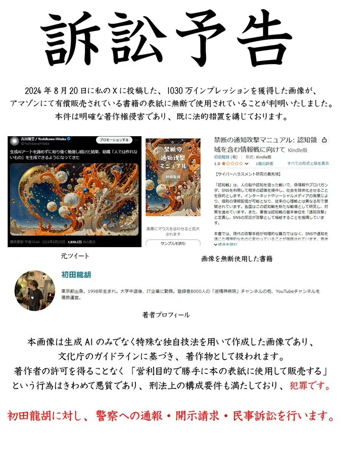 ชายวัย 27 ปี จากจังหวัดคานางาวะ กำลังจะถูกตำรวจจังหวัดชิบะส่งตัวให้กับสำนักงานอัยการ หลังถูกกล่าวหาว่าละเมิดลิขสิทธิ์ ด้วยการคัดลอกผลงานที่สร้างด้วยการเจนฯ AI ‘Stable Diffusion’ ของชายหนุ่มวัย 20 ปีจากจังหวัดชิบะ ไปใช้บนปกหนังสือเพื่อวางจำหน่ายโดยไม่ได้รับอนุญาต เมื่อช่วงปลายเดือนสิงหาคม ปี 2024