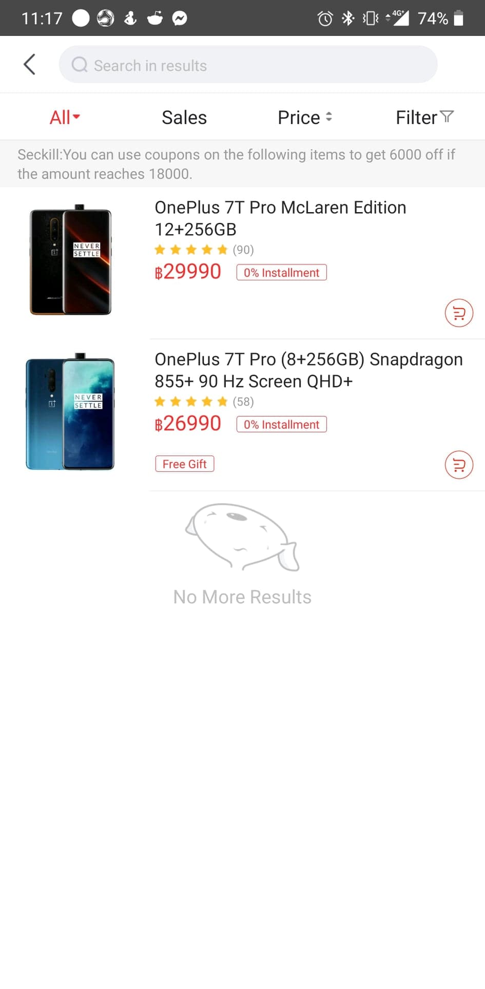- OnePlus 7T Pro จาก 26,990 บาท เหลือ 20,990 บาท