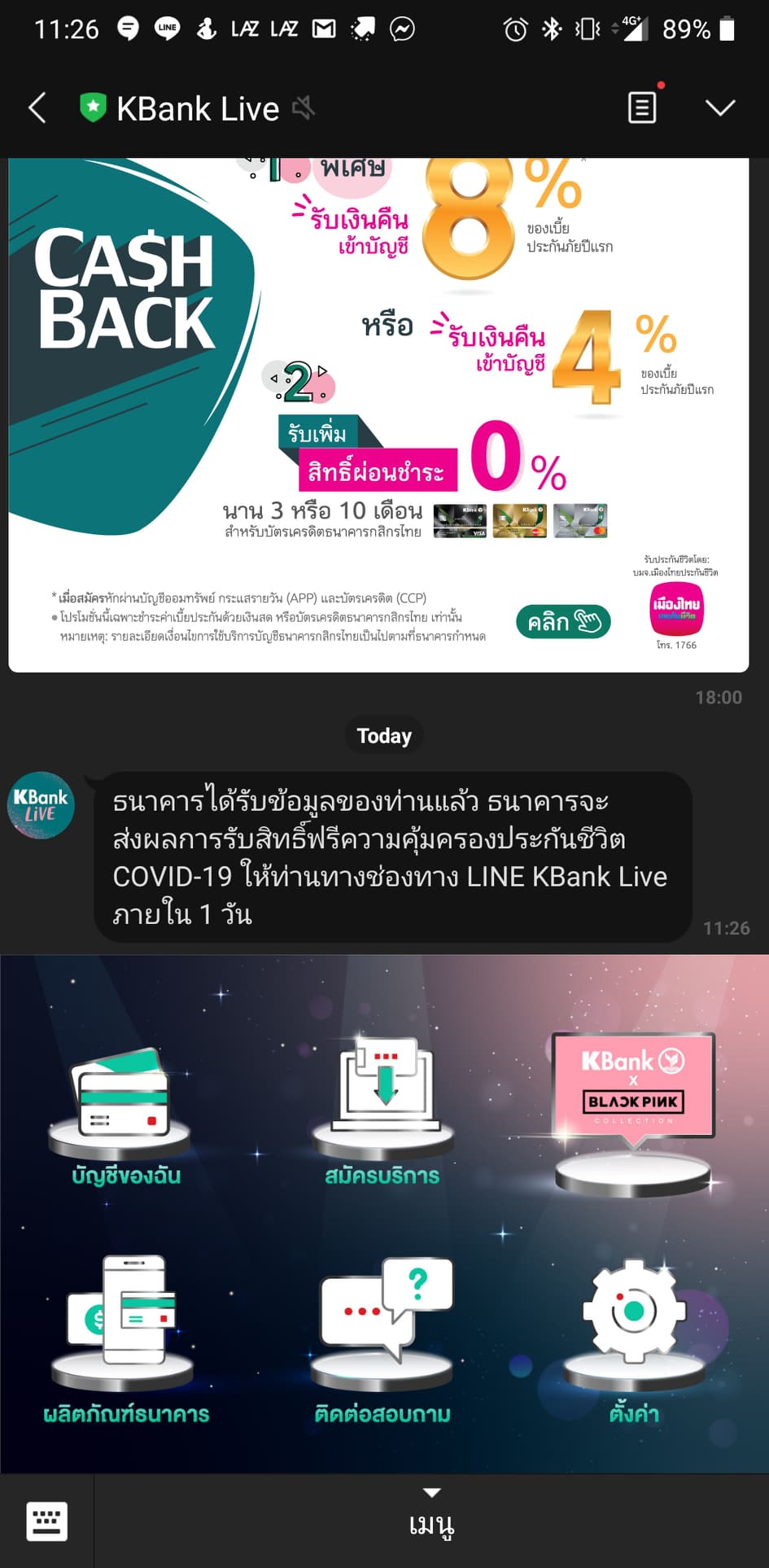 - รอข้อความยืนยันรับสิทธิ์ผ่าน LINE KBank Live