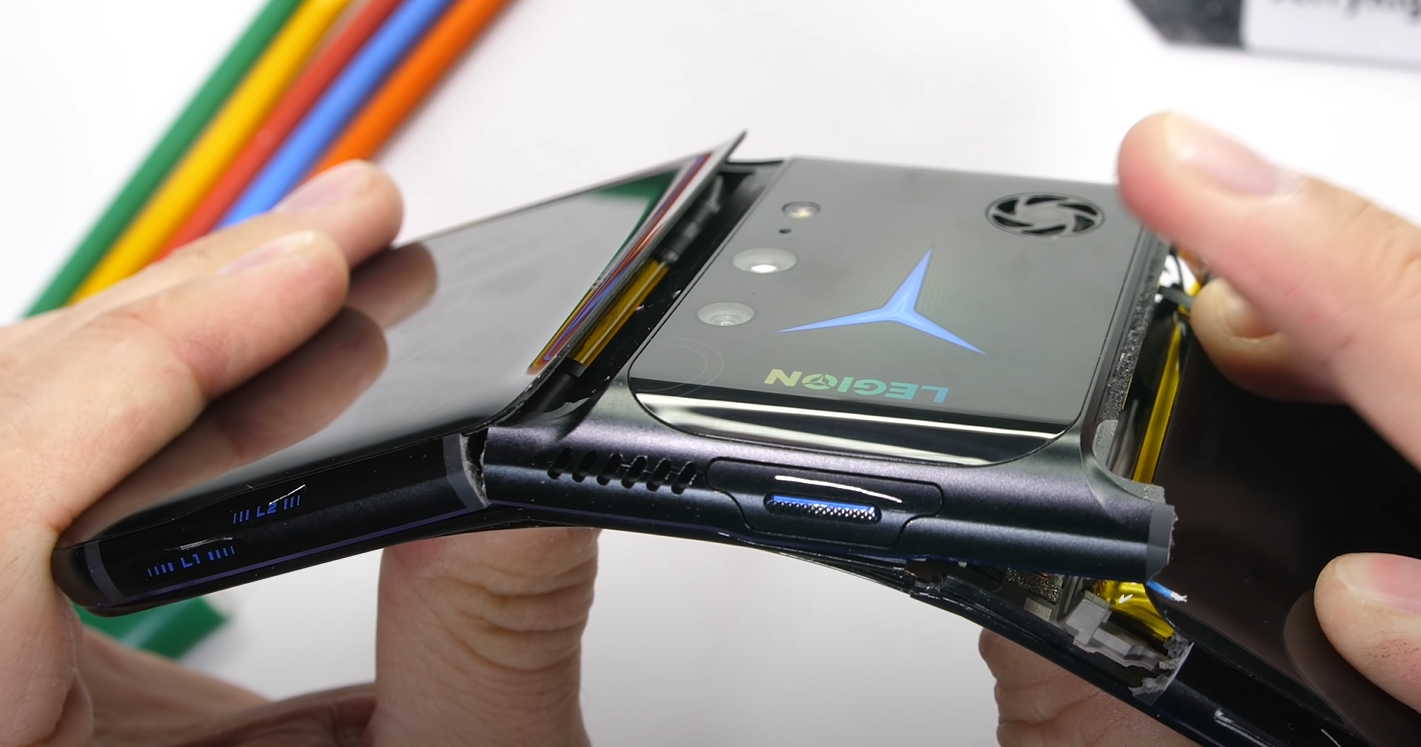 ถือว่าเป็นเคสที่คล้าย ๆ กับตอนของ ROG Phone 5 ที่มีจุดเปราะบางอยู่ที่บริเวณขอบ ๆ ตัวเครื่องตรงที่วางเสาสัญญาณ ผนวกกับการประกอบที่วางแบตเตอรี่สองตัวแยกกัน ทำให้ภายในตัวเครื่องมีช่องว่าง ง่ายต่อการหักงอ แถมพอใส่แรงไปเรื่อย ๆ อีกฟากของปีกเครื่องก็หักตามไปด้วยแบ่งเป็น 3 ท่อนเลยครับ (แต่กระจกหน้าจะติดกันดีอยู่นะ)