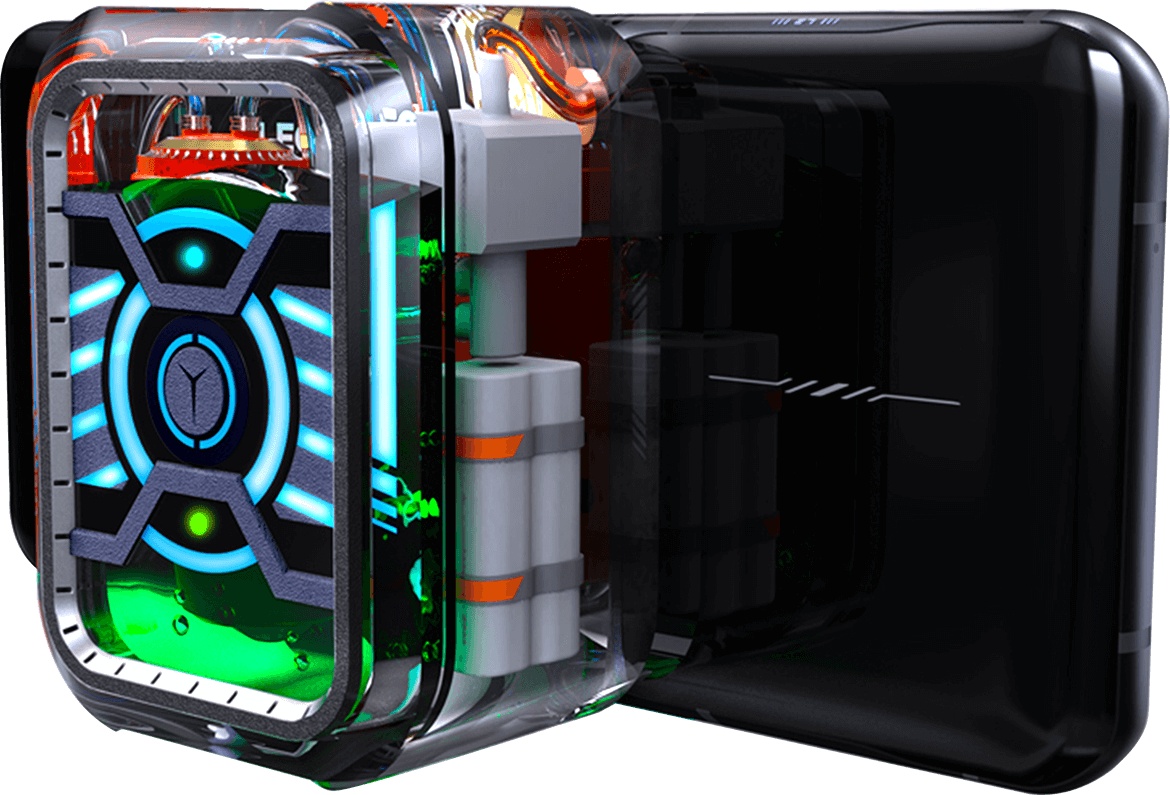 ต่อด้วยมือถือเกมมิ่งที่แหวกแนวสุด ๆ อย่าง Legion Phone Duel H20 Edition ที่ตามข้อมูลบอกว่ามันจะมากับ RAM ขนาด 18GB และความจุสูงถึง 1TB (ไม่ได้บอกไว้ว่าจะใช้ CPU อะไร) ส่วนดีไซน์ของมัน…ดู ๆ แล้วก็ไม่ค่อยแปลกใจที่ Lenovo ตัดสินใจพับโครงการนี้ทิ้งไป