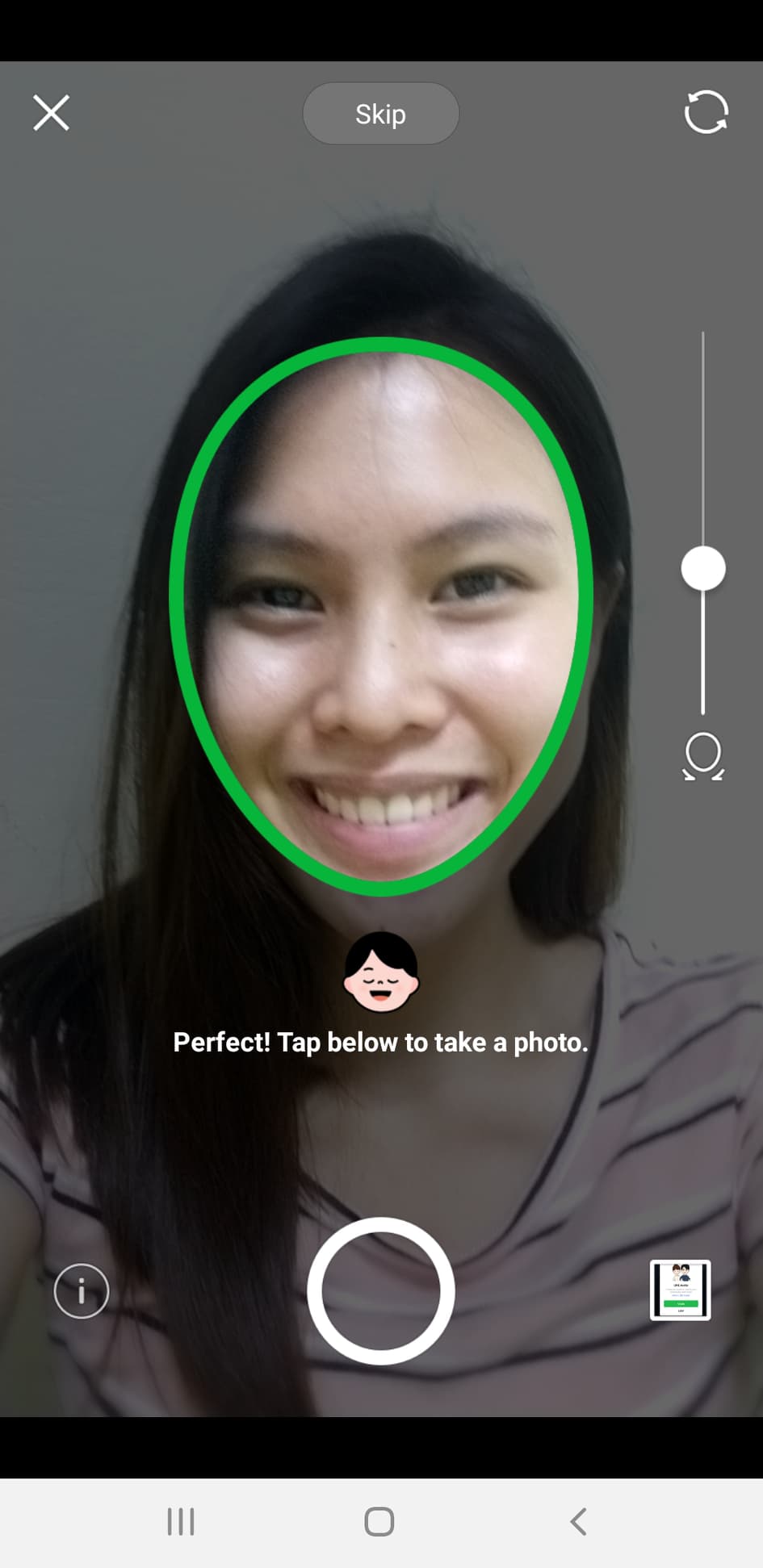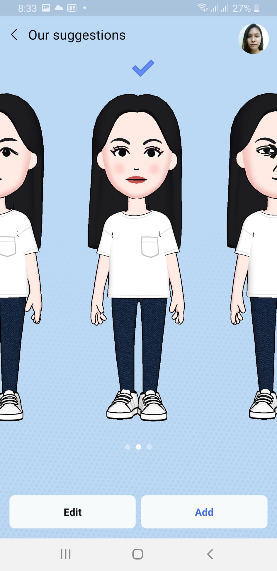 2.ถัดมา ในขั้นตอนการถ่ายรูปนี้ ให้เราทำหน้าตรงๆให้เข้ากับกรอบหน้าบนแอป ซึ่งถ้ามันพอดี ก็จะขึ้นกรอบเป็นสีเขียวแบบนี้ จากนั้นก็กดปุ่มถ่ายได้เลย ซึ่งพอถ่ายเสร็จก็จะมีคาแรกเตอร์ของเราขึ้นให้เลือก ทั้งแบบหน้าสด ,เมคอัพ หรือหน้าตลก ซึ่งถ้าใครที่โอเคกับคาแรกเตอร์แล้วก็สามารถกด Add ได้เลย แต่ถ้าอยากแต่งเพิ่ม มาที่ Edit ในขั้นตอนต่อไปเลยค่ะ