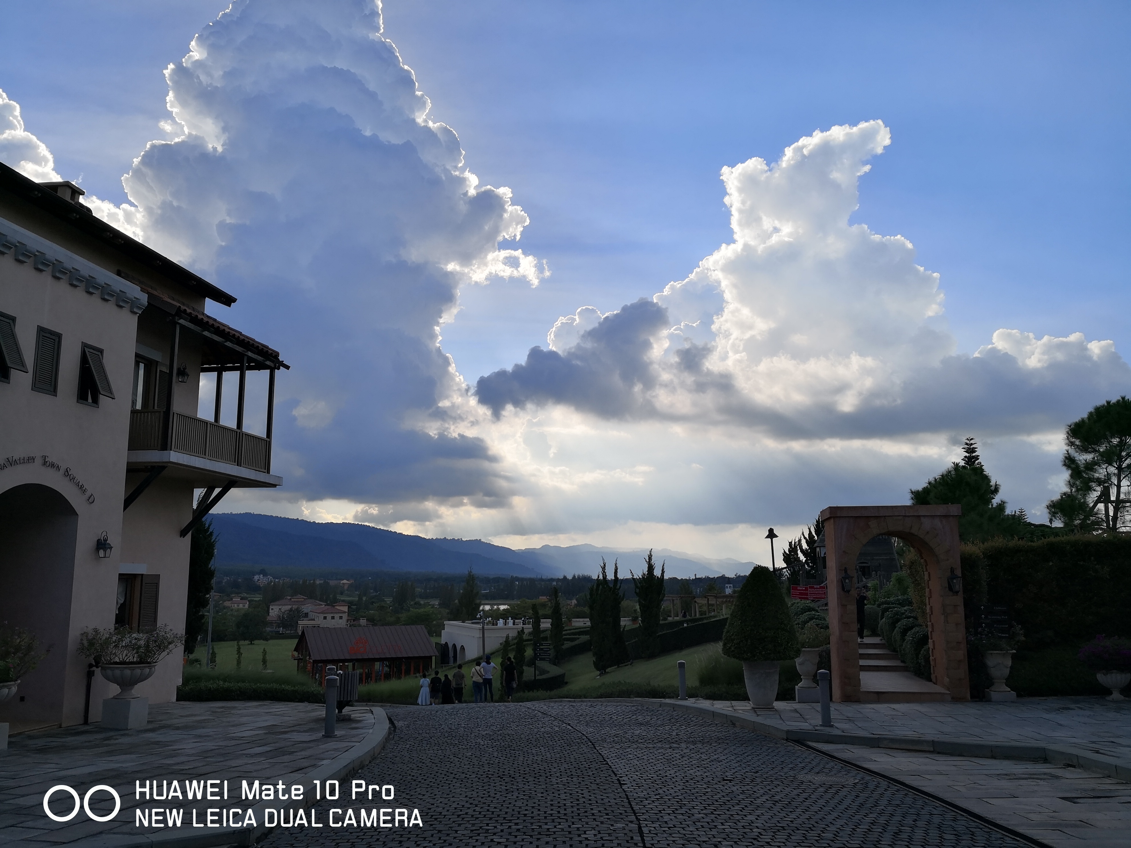 กล้อง Motion Eye ของ XZ1 นั้นมีการ detect ว่าเป็นการถ่ายภาพย้อนแสง ส่วน Note 8 ก็เปิด Auto HDR ส่วน Mate 10 Pro ก็มีระบบ AI มาช่วยวิเคราะห์ก่อนจะถ่ายและเซฟภาพเช่นกัน เซ็ตนี้จะเห็นเรื่องการจัดการกับ noise ในภาพได้ชัด Note 8 และ Mate 10 Pro เก็บนอยส์บนก้อนเมฆไปเรียบ และพยายามดึงความสว่างและรายละเอีนดในเงามืดขึ้นมา แต่ภาพของทาง XZ1 นั้นเลือกที่จะเก็บรายละเอียดบนท้องฟ้าเอาไว้ ทำให้เราเห็นชั้นและการซ้อนกันของปุยเมฆได้ชัดกว่าอีก 2 รุ่น ส่วนพื้นที่ด้านล่าง Sony ไม่สนใจ ปล่อยมืดไปซะยังงั้น