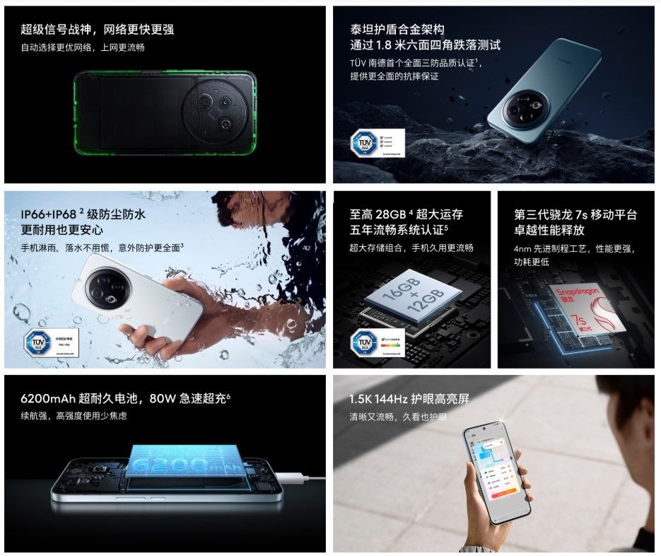 นอกจากนี้ ยังใช้การออกแบบแบบโครงสร้าง “คานป้องกันการกระแทก” และ “ถุงลมนิรภัย” บนโทรศัพท์มือถือ และยังรองรับการกันฝุ่นและน้ำตามมาตรฐาน IP66+IP68 อีกด้วย จึงทำให้โทรศัพท์รุ่นนี้มีระยะป้องกันการตกจากที่สูง 1.8 เมตร จากมุมทั้งสี่และทั้งหกด้าน และผ่านการทดสอบกันน้ำลึก 2 เมตร นาน 36 ชั่วโมง นับเป็นโทรศัพท์มือถือรุ่นแรกของอุตสาหกรรมที่ได้รับการรับรอง “คุณภาพกันสามชั้น” จาก TÜV SÜD ตามที่บริษัทระบุ
