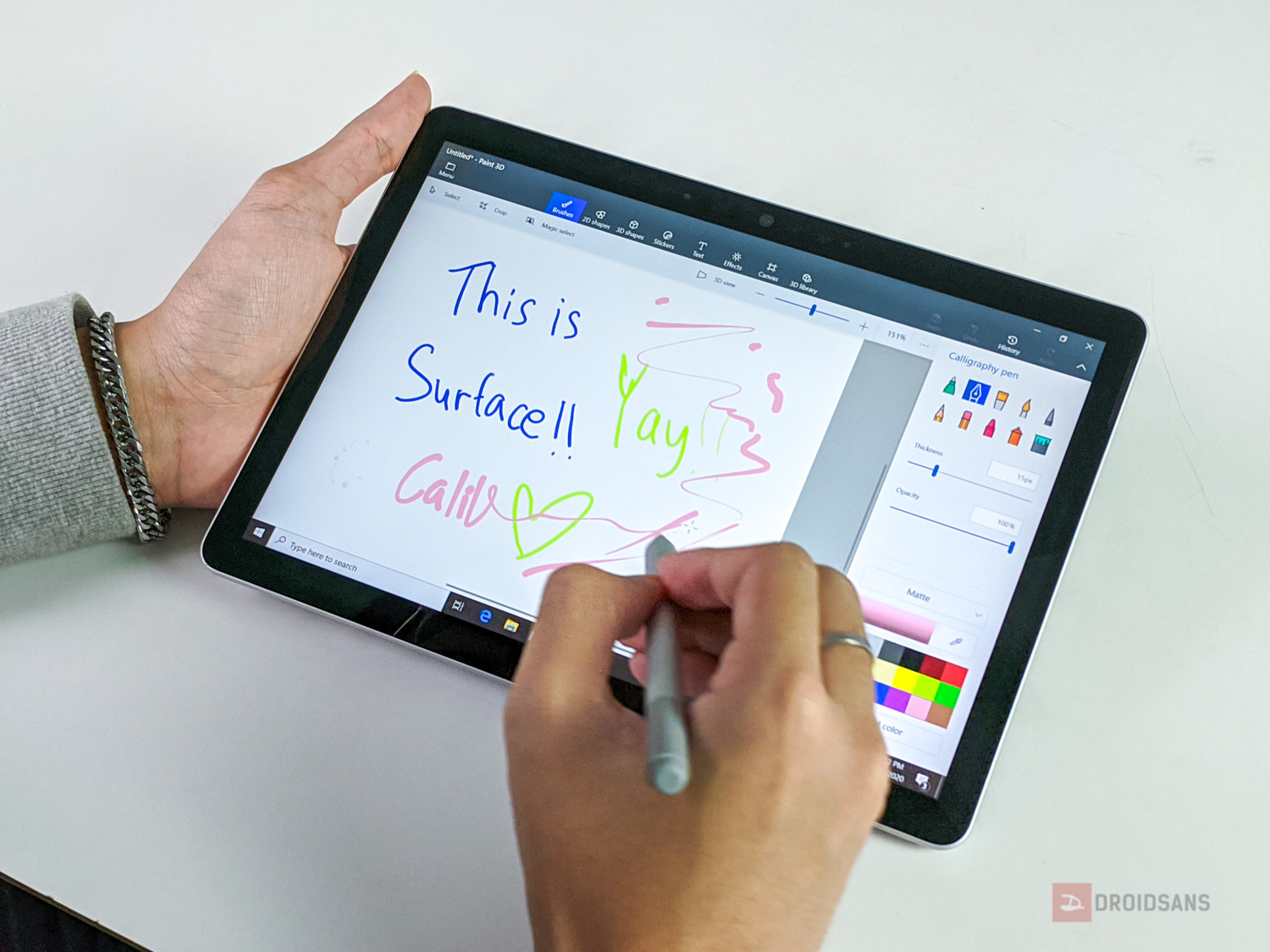 จริงๆ แล้ว Surface Go 2 จัดเป็นโน้ตบุ๊คแนว 2-in-1 นะ เพียงแต่หน้าตาอาจจะเหมือนแท็บเล็ตไปหน่อย ซึ่งเพื่อนๆ สามารถต่อคีย์บอร์ด เมาส์ได้ไม่ต่างจากโน้ตบุ๊คปกติเลย โดย ไม่ใช่แท็บเล็ตซะทีเดียว Surface Go 2 รุ่นใหม่นี้จะมาพร้อมกับหน้าจอสัมผัสขนาด 10.5 นิ้ว ความละเอียด 1920 x 1280 สัดส่วน 3:2 เหมาะแก่สายทำงานที่ต้องการหน้าจอที่มีความกว้างมากยิ่งขึ้น ไว้สำหรับดูแก้ไขเอกสาร งานตาราง หรือใช้ตกแต่งรูปภาพเบาๆ ก็ย่อมได้