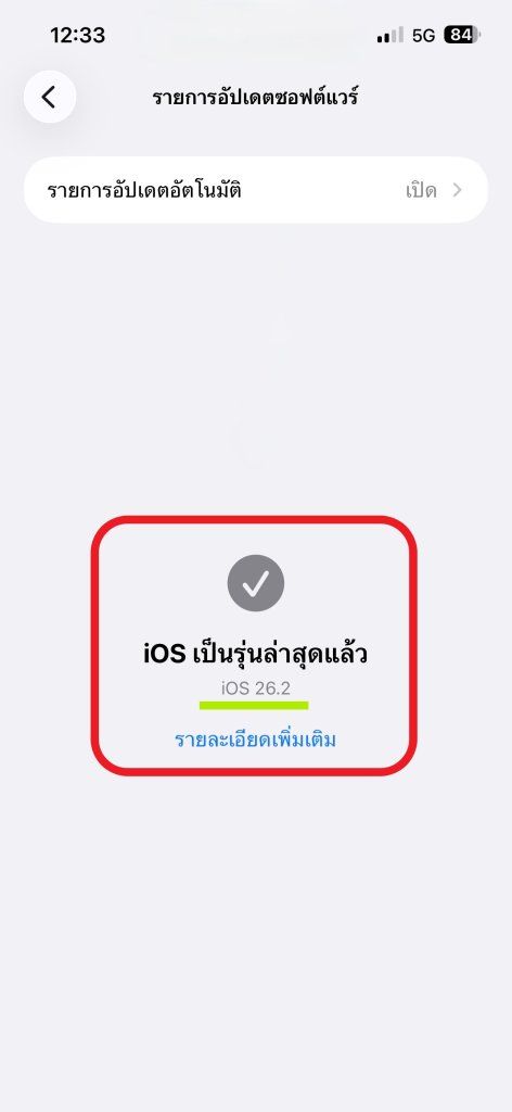 - หากอัปเดตแล้ว จะขึ้นว่า iOS เป็นรุ่นล่าสุดแล้ว ให้ดูว่าเป็นเวอร์ชันอะไร หากเป็น iOS 14 ขึ้นไป ถือว่าใช้งานได้ไม่มีปัญหา