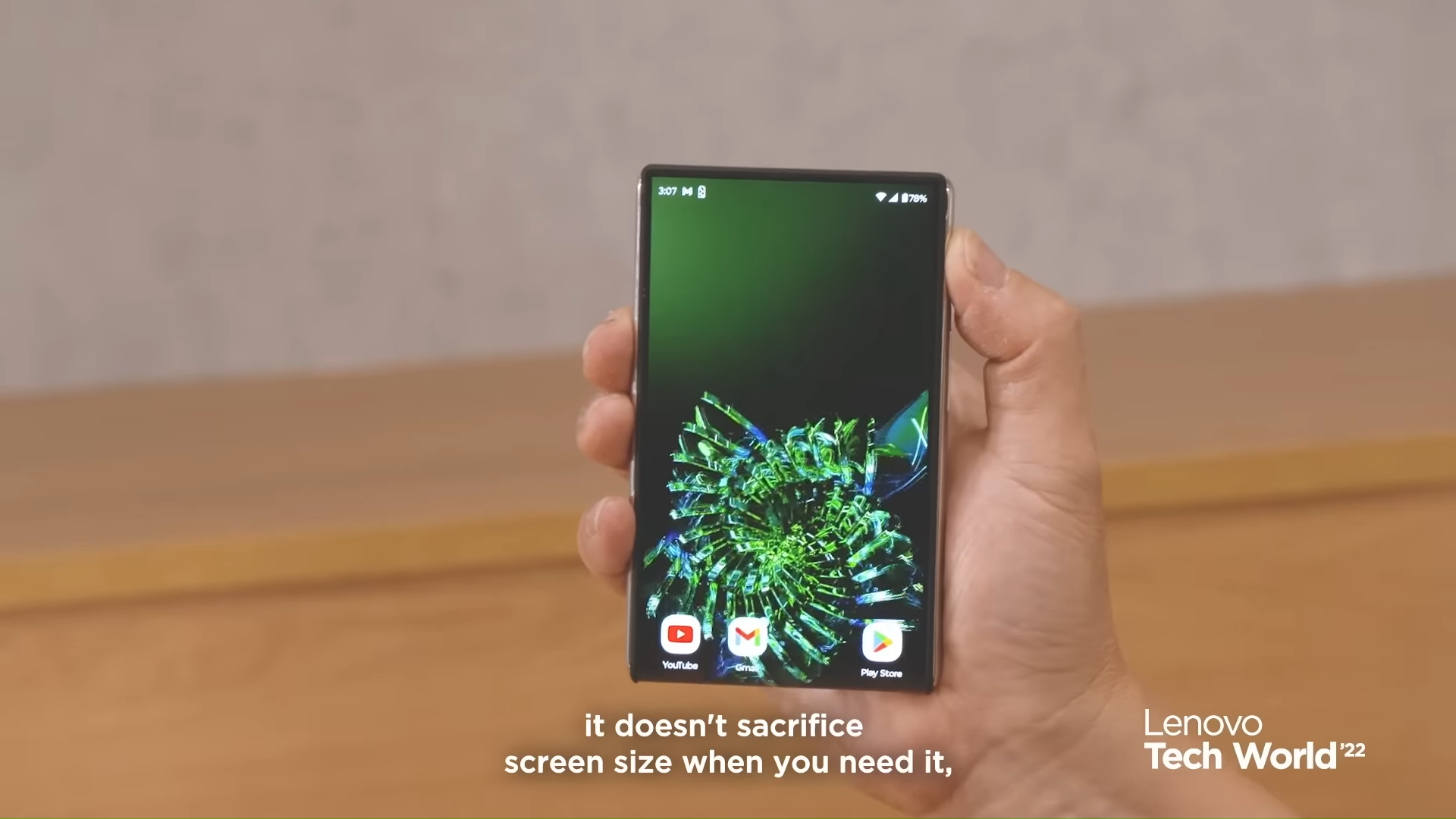 ในงาน Lenovo Tech World 2022 เค้าก็ได้มีการโชว์สินค้าแบะนวัตกรรมต่าง ๆ ของบริษัท มีเรื่องเด่นที่น่าสนใจเป็น สมาร์ทโฟนจอม้วน ที่เผยออกมาเป็นวิดีโอ โชว์ความสามารถยืดหดเครื่องพร้อมแสดงหน้าจอเพิ่มขึ้นมาได้ในแนวตั้ง ซึ่งเครื่องนี้ก็คงเป็นเพียงการแสดงคอนเซปต์เท่านั้น ยังไม่มีประกาศสานต่อมาเป็นรุ่นมือถือที่จะวางขายจริง แต่ก็ทำให้รู้ว่าแบรนด์โมโตเค้าก็สนใจทำมือถือทรงอื่นด้วยเหมือนกัน