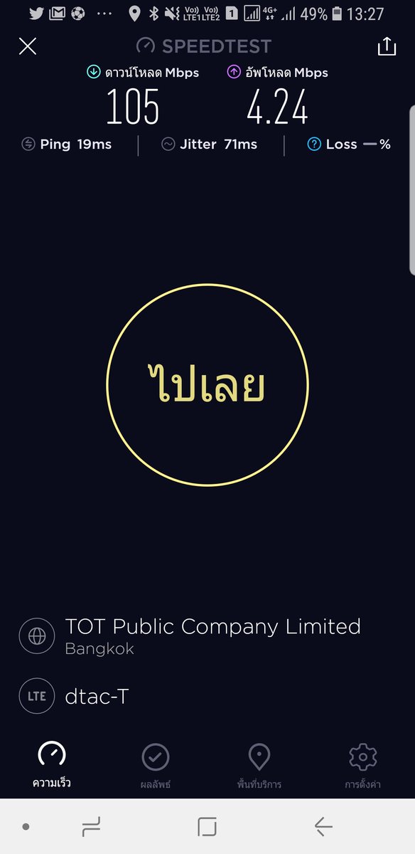 ด้านล่างนี้ลองทำ Speedtest จากคลื่น 2300MHz ของดีแทคมานะครับ โดยพื้นที่จะอยู่สีลม สาทร ลาดพร้าวประมาณนี้ คือถ้าทำเสร็จสามารถจับ 3CA คุณภาพ4G จะดีขึ้นกว่าเดิมมากจริงๆ แต่ความครอบคลุมยังไม่ดีนักนะ บอกไว้ก่อนกลัวเข้าใจผิด พื้นที่ที่เน็ตไม่ไหวจะใช้ก็ยังเยอะอยู่ แต่ช่วงเดือนที่ผ่านมาขยายเร็วมากจนน่าติดตามว่าจะทำได้ขนาดไหนครับ