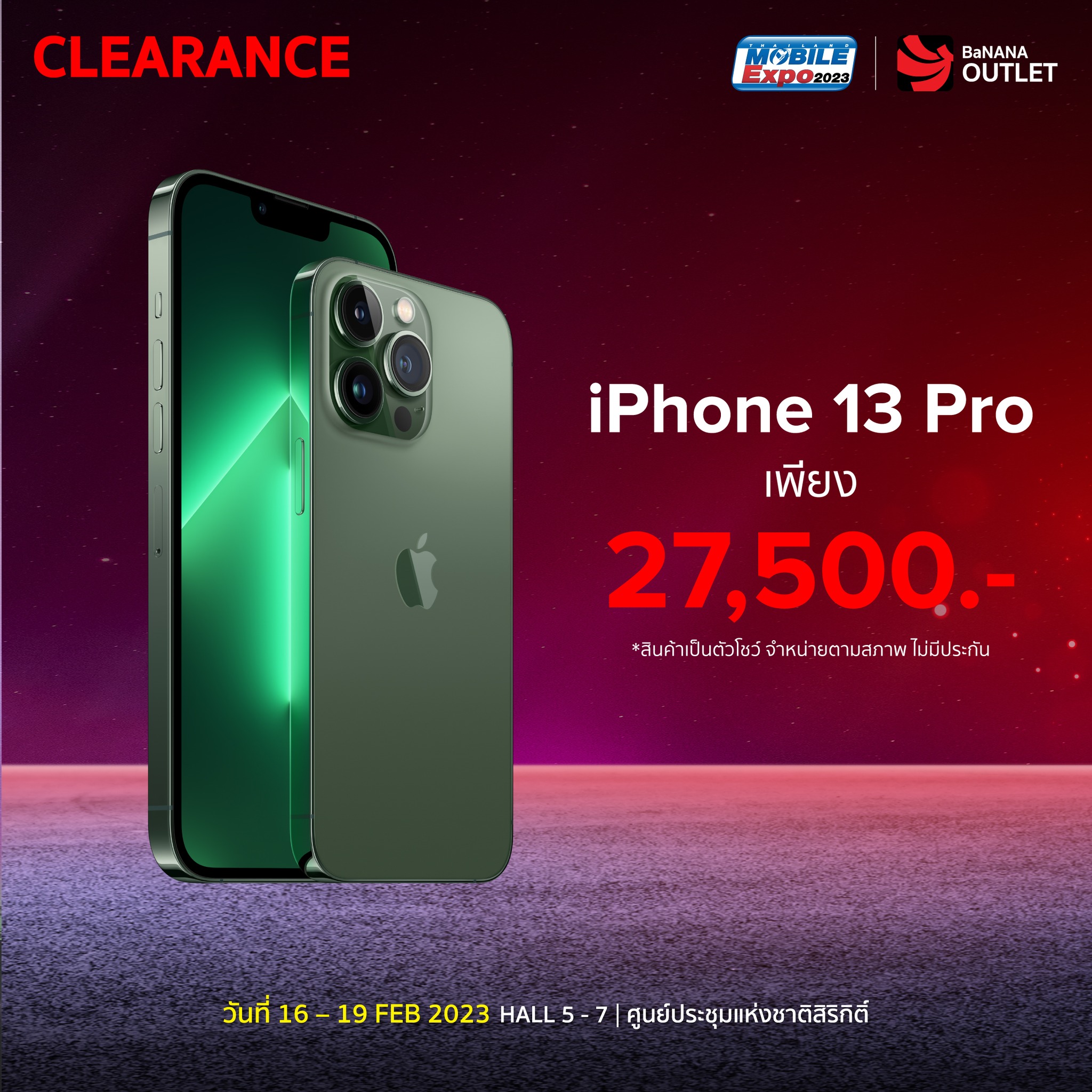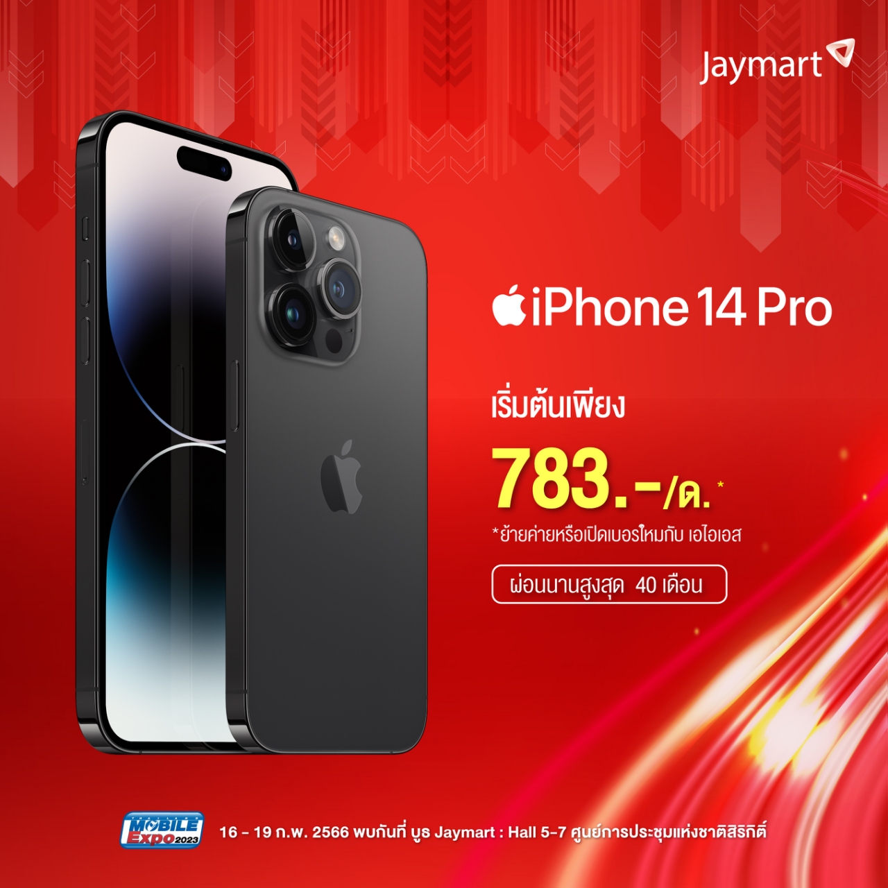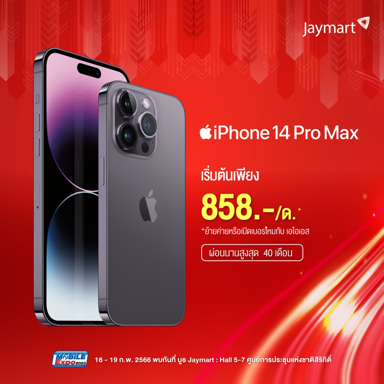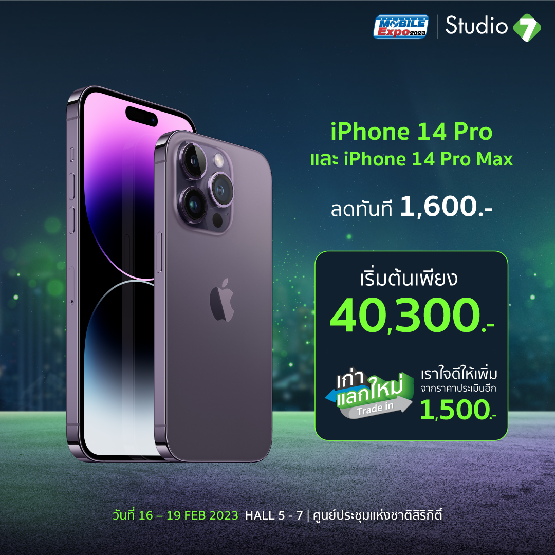 ในที่สุดงานที่ทุกคนรอคอยก็มาถึงแล้วกับ Thailand Mobile Expo 2023 มหกรรมมือถือที่ใหญ่ที่สุดของประเทศ นอกจากจะมีโปรโมชั่นใหม่ ๆ ขนทัพมาลดแลกแจกแถมทั้งสินค้าสมาร์ทโฟน รวมถึงอุปกรณ์ IT แล้ว ยังมีสินค้าล้างสต๊อกในสภาพดีให้ทุกคนได้จับต้องในราคาย่อมเยาสุด ๆ ด้วยค่ะ และที่สำคัญใครกำลังรอสินค้าจาก Apple ก็เตรียมตัวเลย เพราะงานนี้จะเอามาลดสูงสุดถึง 70% iPhone เริ่มต้นเพียง 7,500 บาท ส่วน iPad เริ่มต้นเพียง 9,900 บาท MacBook เริ่มต้นเพียง 28,200 บาท ตั้งแต่วันที่ 16-19 กุมภาพันธ์ 2023 เท่านั้น ณ ศูนย์ฯสิริกิติ์ Hall 5 -7