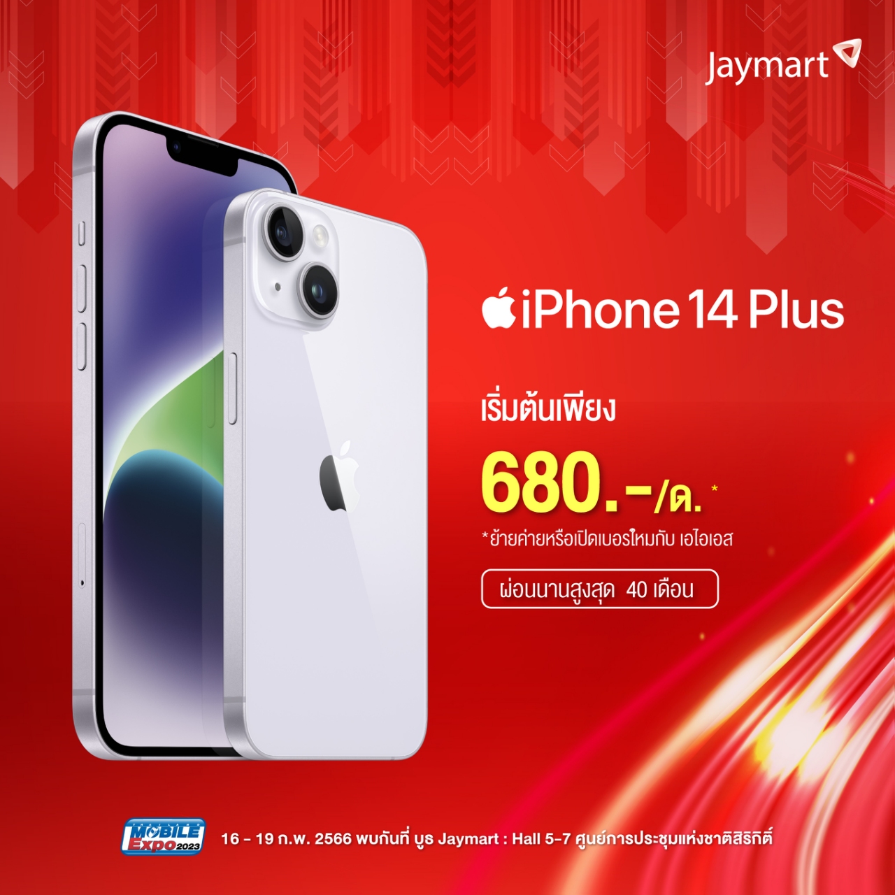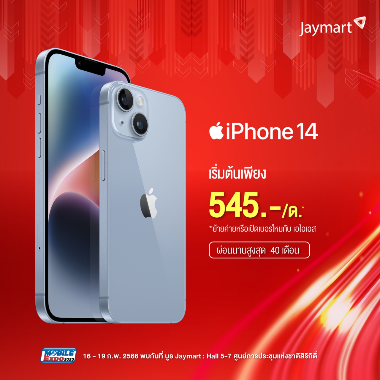 สำหรับค่าย Jaymart จะเป็นการผ่อน โดย iPhone 14 ทุกรุ่น พร้อมราคาสุดพิเศษ เริ่มต้นเพียง 545 บาท ต่อเดือน