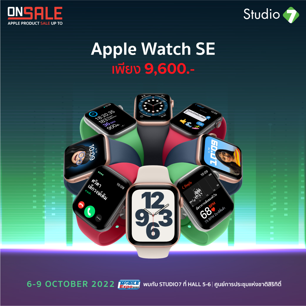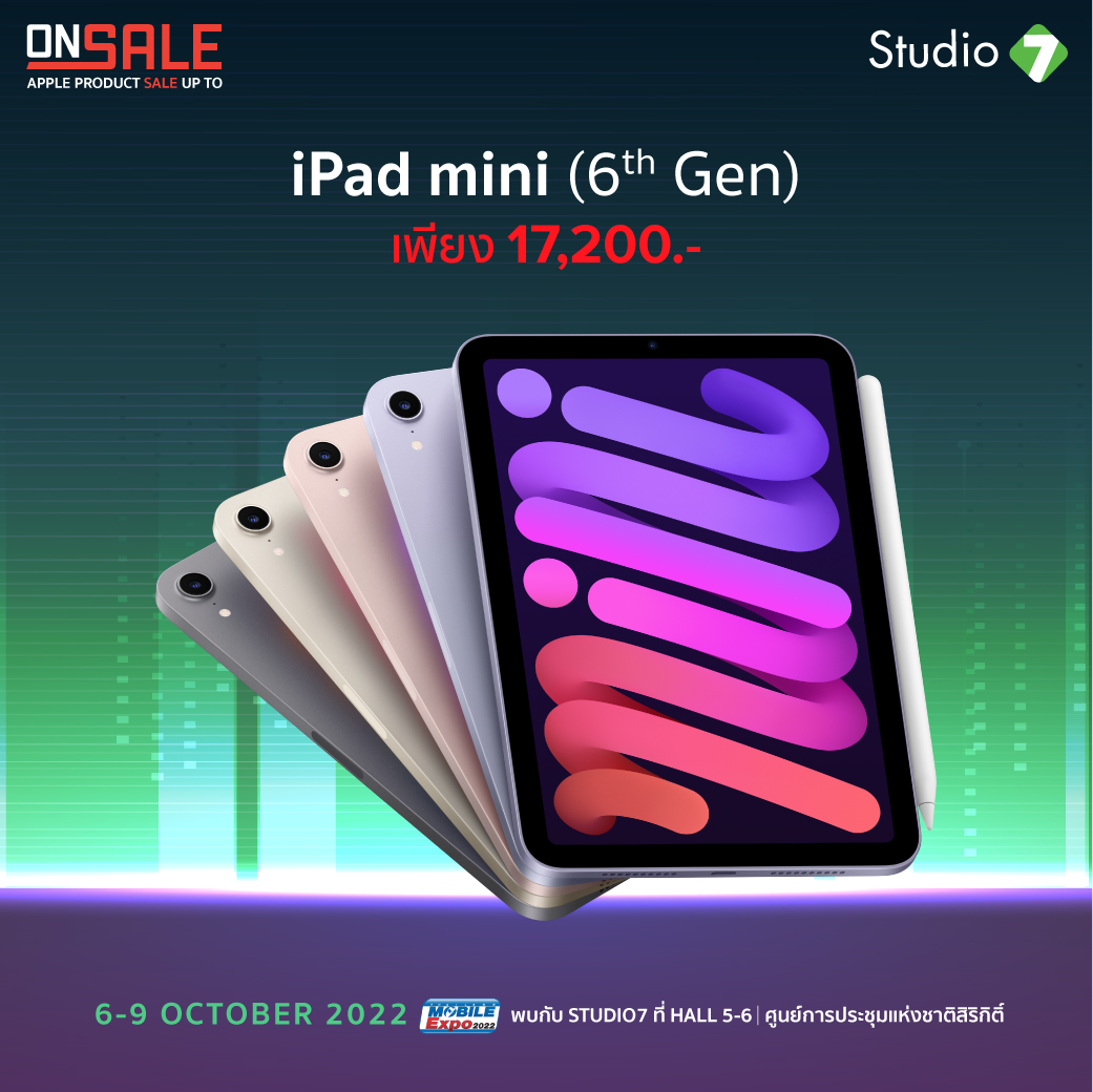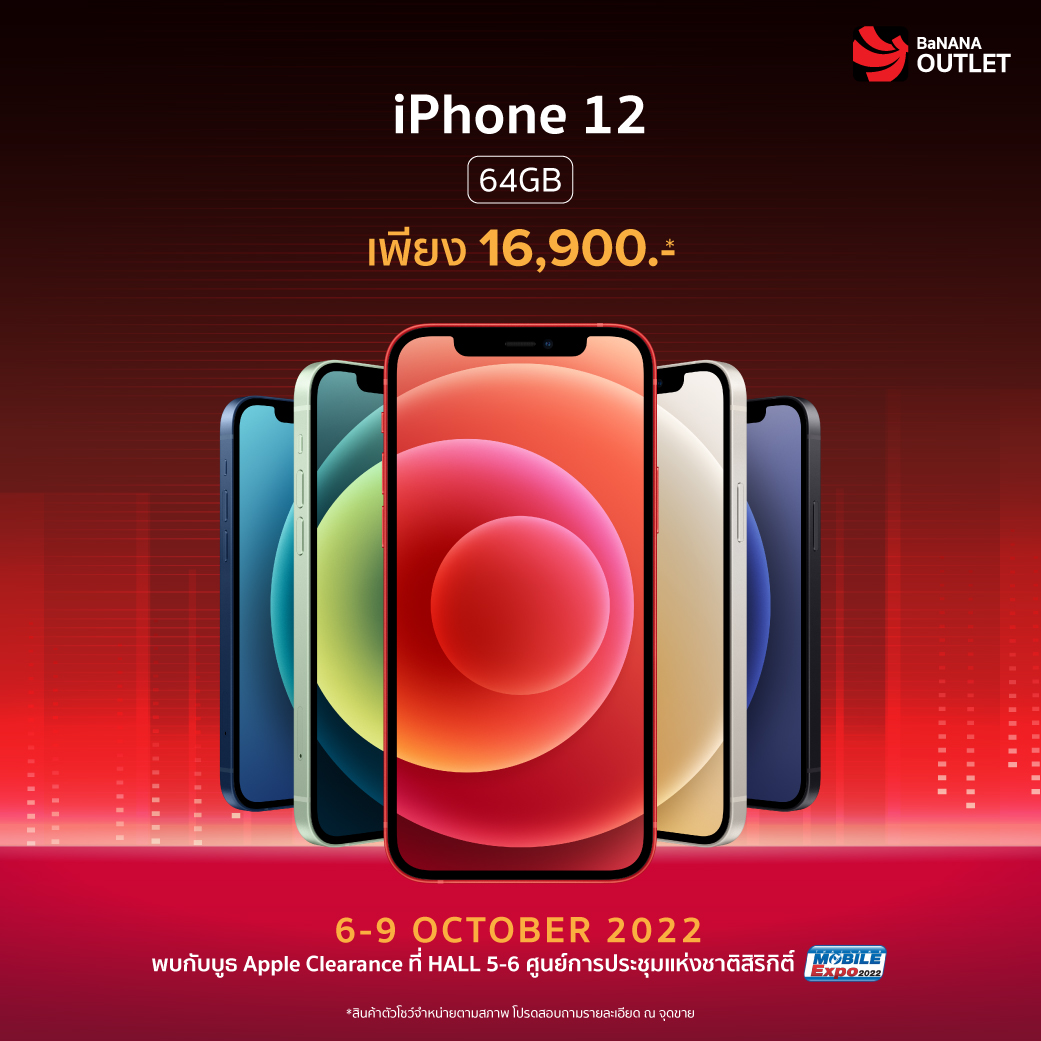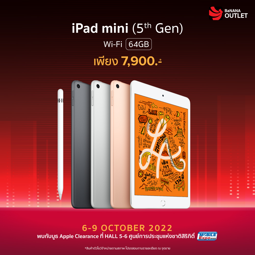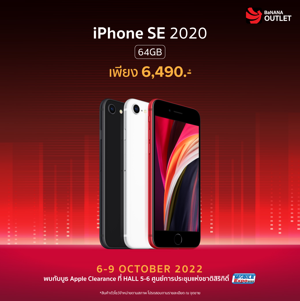 ภายในงาน Thailand Mobile Expo 2022 นอกจากจะมีโปรโมชั่นลดแลกแจกแถมทั้งสินค้าสมาร์ทโฟน รวมถึงอุปกรณ์ IT รุ่นใหม่แล้ว ยังมีสินค้าล้างสต๊อกในสภาพดีให้ทุกคนได้จับต้องในราคาย่อมเยาสุด ๆ ด้วยค่ะ และที่สำคัญใครกำลังรอสินค้าจาก Apple ก็เตรียมตัวเลย เพราะงานนี้จะเอามาล้างสต๊อกสูงสุดถึง 70% โดย iPhone เริ่มต้นเพียง 6,490 บาท ส่วน iPad เริ่มต้นเพียง 7,900 บาท MacBook เริ่มต้นเพียง 35,500 บาท ตั้งแต่วันที่ 6-9 ตุลาคม 2565 เท่านั้นนะคะ