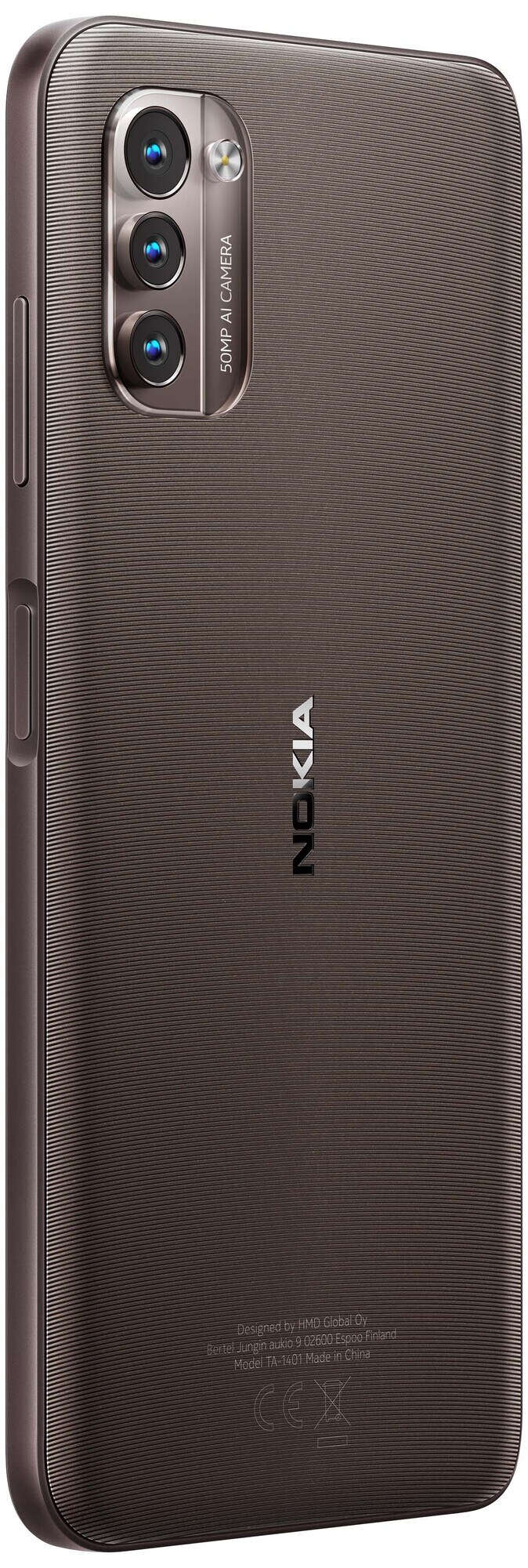 โดยดีไซน์ของ Nokia G21 จะเปลี่ยนไปจาก Nokia G20 อยู่พอสมควร ไม่ว่าจะเป็นพื้นผิวตัวเครื่องที่ตอนแรกเป็นลายทางแนวตั้ง แต่คราวนี้เปลี่ยนเป็นลายทางแนวนอนแทน ส่วนกล้องหลังจากเดิมมี 4 ตัว บนโมดูลวงกลม ก็เหลือ 3 ตัว วางอยู่บนโมดูลสี่เหลี่ยมด้านซ้ายบน