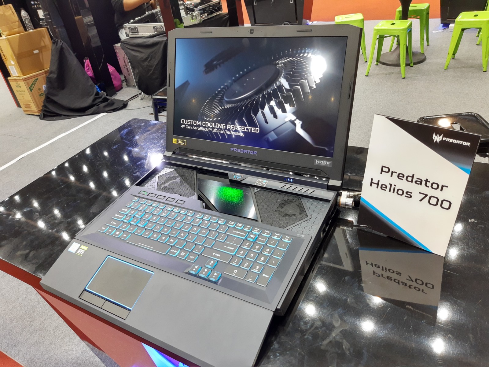 Notebook Gaming สุดล้ำที่จุดเด่นของมันคือการดีไซน์คีย์บอร์ดแบบ HyperDrift ให้สามารถสไลด์ออกมาได้แบบไม่มีใครเหมือน เพื่อช่วยในการระบายความร้อนเวลาเราเล่นเกมหนักๆ นั่นเอง รุ่นนี้นำมาโชว์ในงานให้ได้ลองสัมผัสกัน เห็นว่าเปิดตัวมาราวๆ 8x,xxx บาท ตอนนี้ยังไม่ทราบราคาไทย
