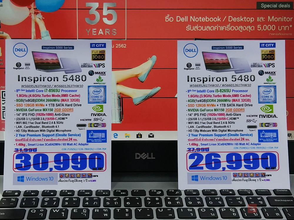 - i7-8765U + MX150 + SSD 128GB + HDD 1TB + Ram 8GB ปกติ 30,900 บาท ลดเหลือ 28,900 บาท