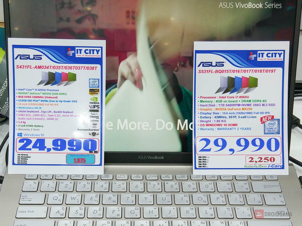โน้ตบุ๊คสายทำงานอีกรุ่นน่าสนใจไม่น้อยกับ ASUS VivooBook S431FL | S532FL ซึ่งทั้งสองตัวเครื่องจะสเปคเหมือนกันแต่จะแตกต่างกันตรงที่เป็นหน้าจอ 14 นิ้ว และ 15.6 นิ้ว และรุ่น 15.6 นิ้วคีย์บอร์ดจะมี Numpad กับมี HDD ธรรมดามาให้ด้วย โดยทั้งสองรุ่นราคาลดจากป้าย 1,000 บาทครับ (เหลือ 23,990 บาท สำหรับสเปค i5, 28,990 บาท สำหรับสเปค i7)