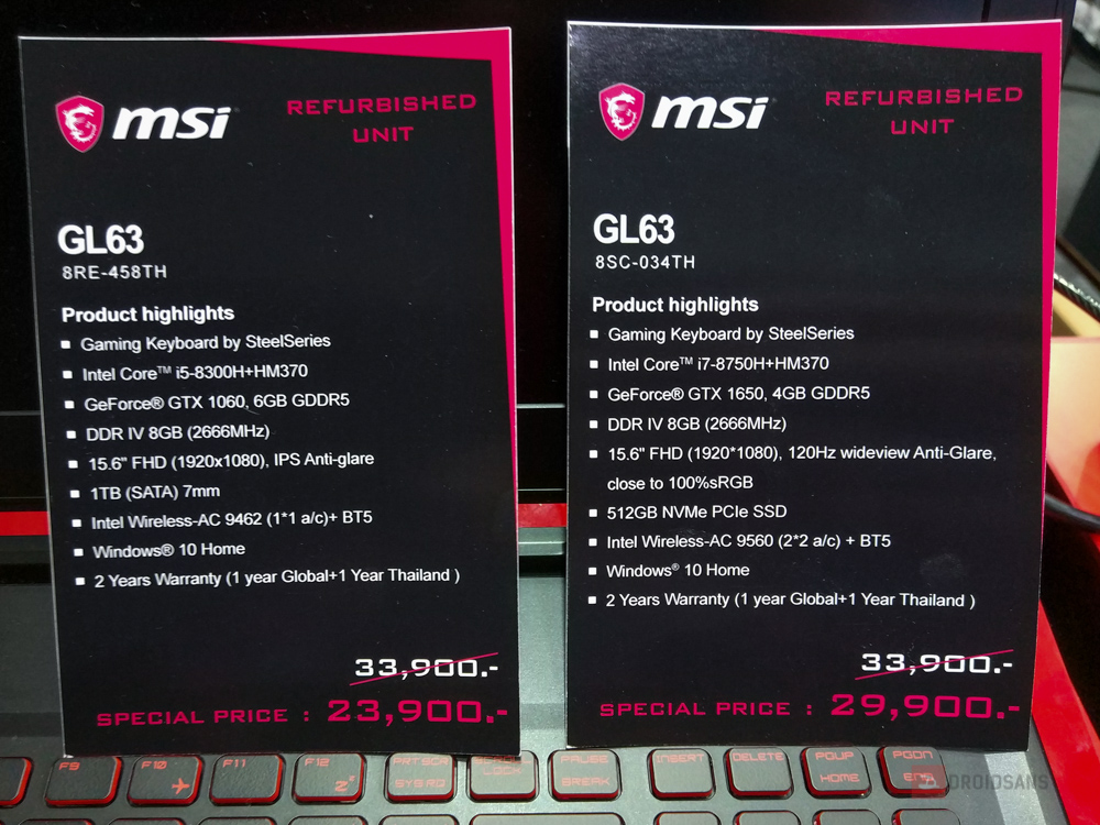 ถ้าใครที่กำลังมองหาเกมมิ่งโน้ตบุ๊คเน้นสเปคแรงสุด เล่นเกมลื่นสุด โดยไม่สนใจว่าเครื่องตกรุ่นไปแล้ว หรือเป็นเครื่อง Refurbished (เครื่องซ่อมมาขายใหม่) ขอแนะนำเลยกับเจ้าตัว MSI GL63 8RE ที่มาพร้อมกับการ์ดจอ GTX 1060 แรงๆ ควบคู่กับ i5-8300H เล่นได้ทุกเกมบนโลกลื่นๆ บนความละเอียด Full HD ลดราคาไปเป็นหมื่น เหลือ 23,900 บาทเท่านั้นครับ
