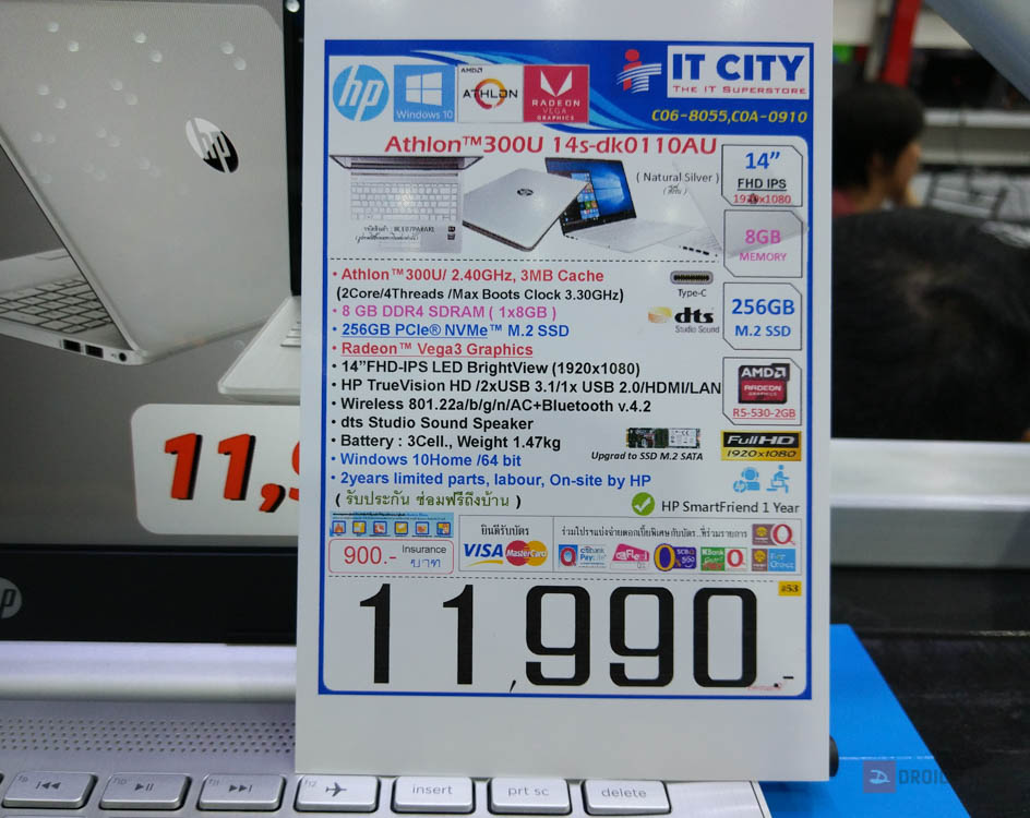 HP มางาน TME คราวนี้ดุจริง ราคาแต่ละรุ่นถือว่าคุ้มสุดๆ โดยเฉพาะเจ้าตัว HP 14s รุ่นใหม่ตัวนี้ที่มาพร้อมกับชิป AMD Athlon 300U น้องเล็กรุ่นใหม่ล่าสุด 2 core/ 4 thread บนสถาปัตยกรรม 14nm ที่สำคัญตัวเครื่องมาพร้อมกับ Ram 8GB, SSD 256GB และได้จอ 14 นิ้ว Full HD IPS อีกด้วย โคตรคุ้ม กับราคาแค่ 11,990 บาทเท่านั้น