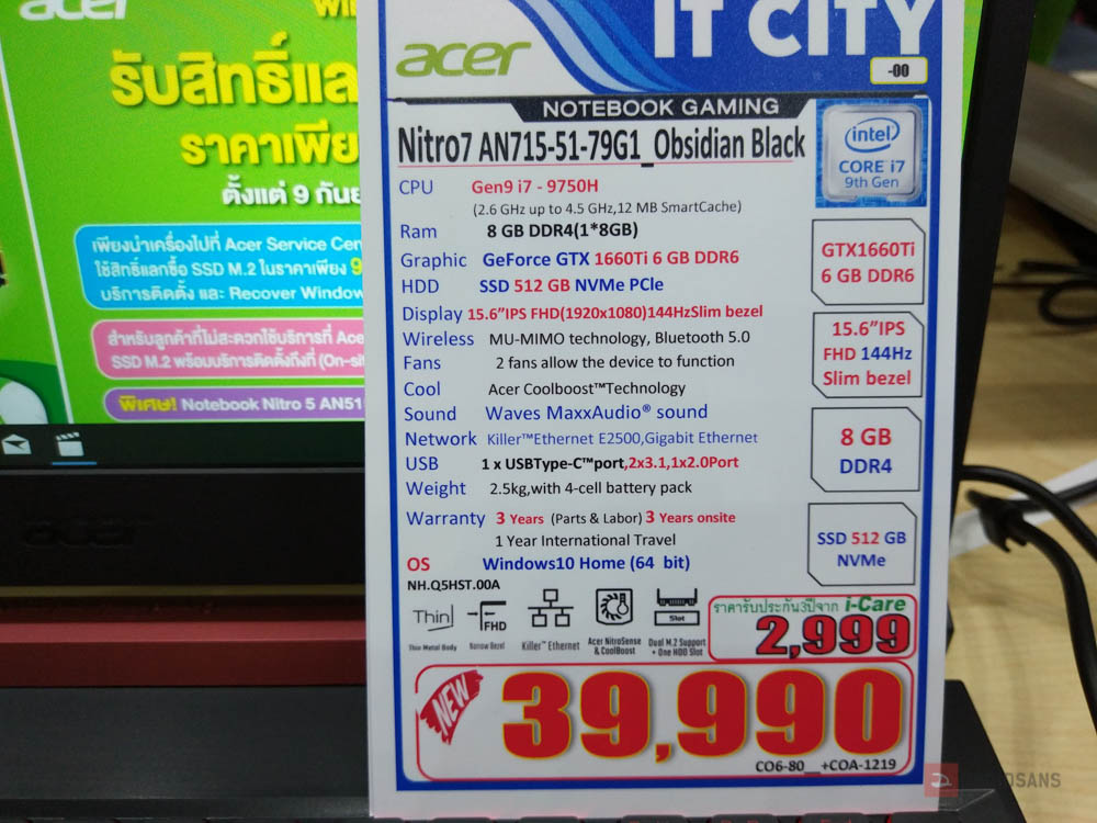 - i5-9300H + GTX 1650 + SSD512GB ปกติราคา 24,990 บาท ในงานลดเหลือ 22,990 บาท (ประกัน Onsite 3 ปี)