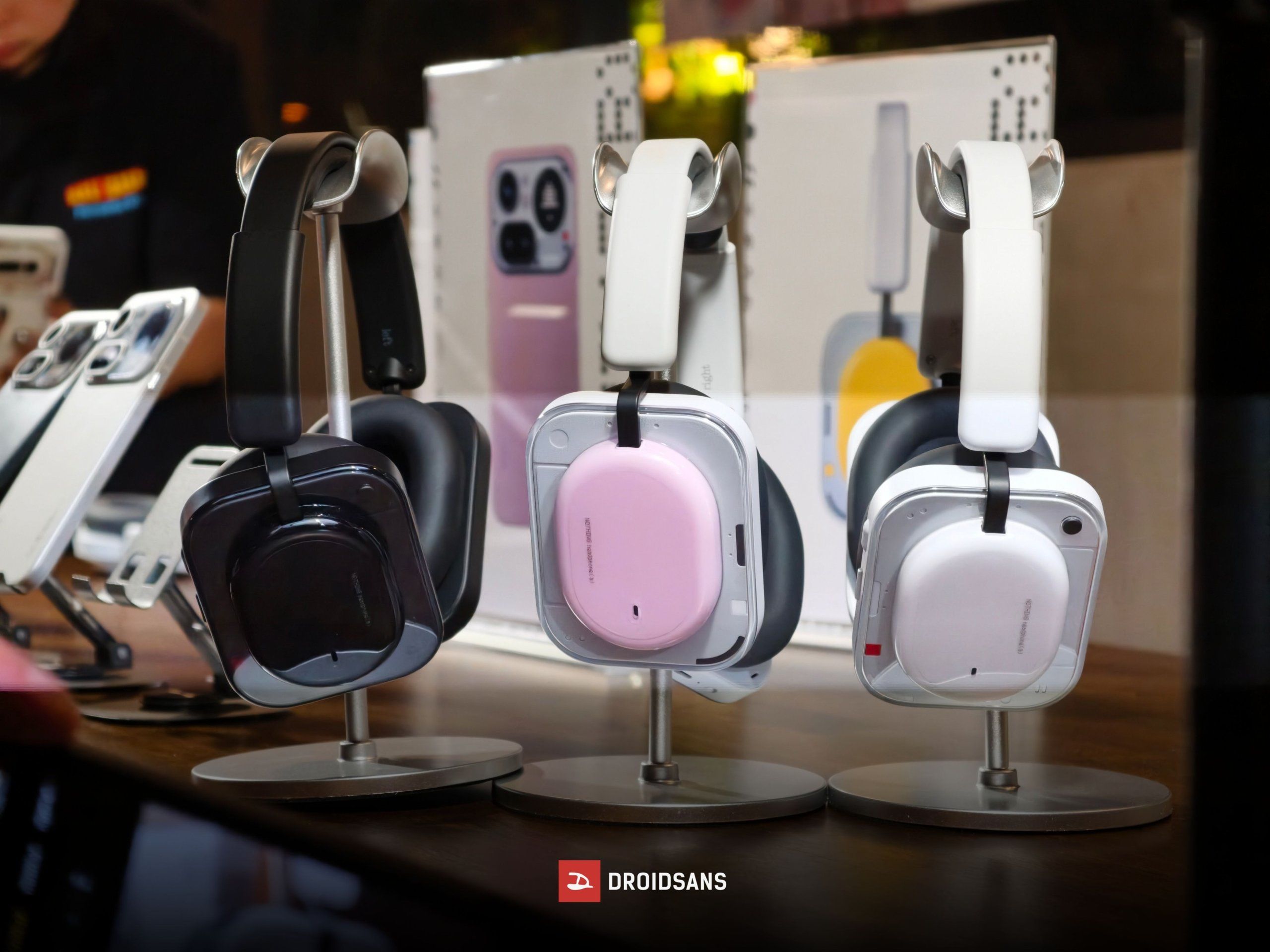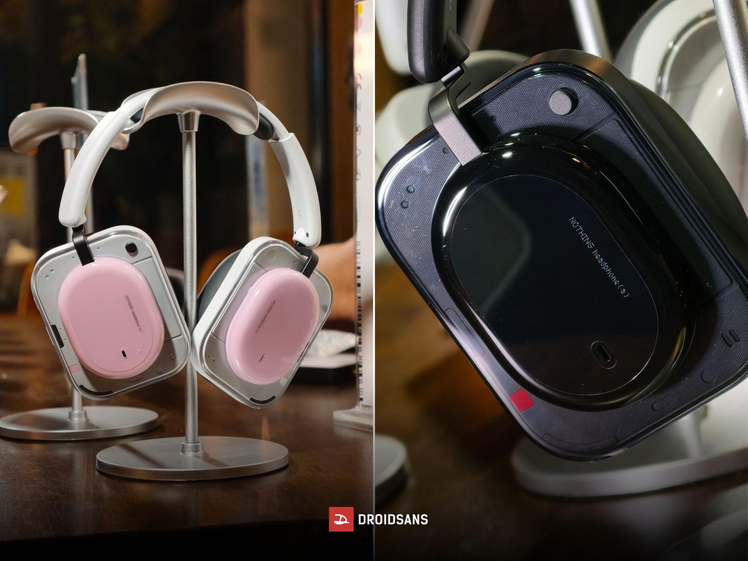 สำหรับ Nothing Headphone (a) ดีไซน์หรือหน้าตาค่อนข้างคล้ายกับรุ่นพี่อย่าง Headphone (1) แต่มีตัวเลือกสีที่สดใสมากกว่า โดยในทริปครั้งนี้มีให้ดูมากถึง 3 สี ได้แก่ สีชมพู (Pink) สีดำ (Black) และสีขาว (White) ส่วนสีเหลืองต้องมารอลุ้นกันอีกทีว่าจะเข้าไทยหรือเปล่า