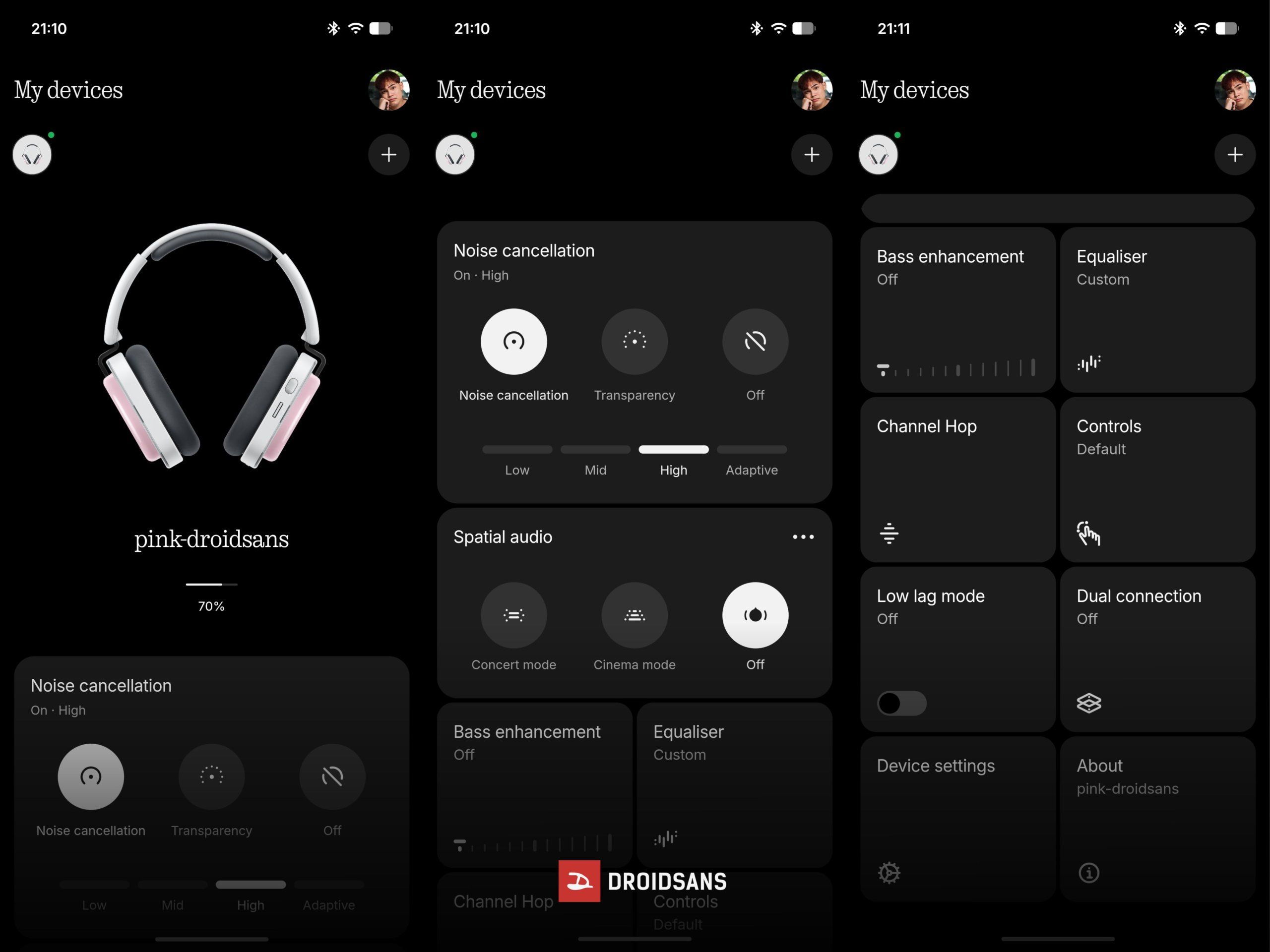 การเชื่อมต่อสามารถใช้งานกับ Nothing X ได้เลย ตั้งค่าเพิ่มเติมได้เยอะมาก ๆ เช่น ระดับการตัดเสียงรบกวน, Equaliser, ปุ่มควบคุมของหูฟัง, เพิ่มน้ำหนักเสียงเบส และเปิด-ปิดการเชื่อมต่อแบบ Dual connection ได้ด้วย