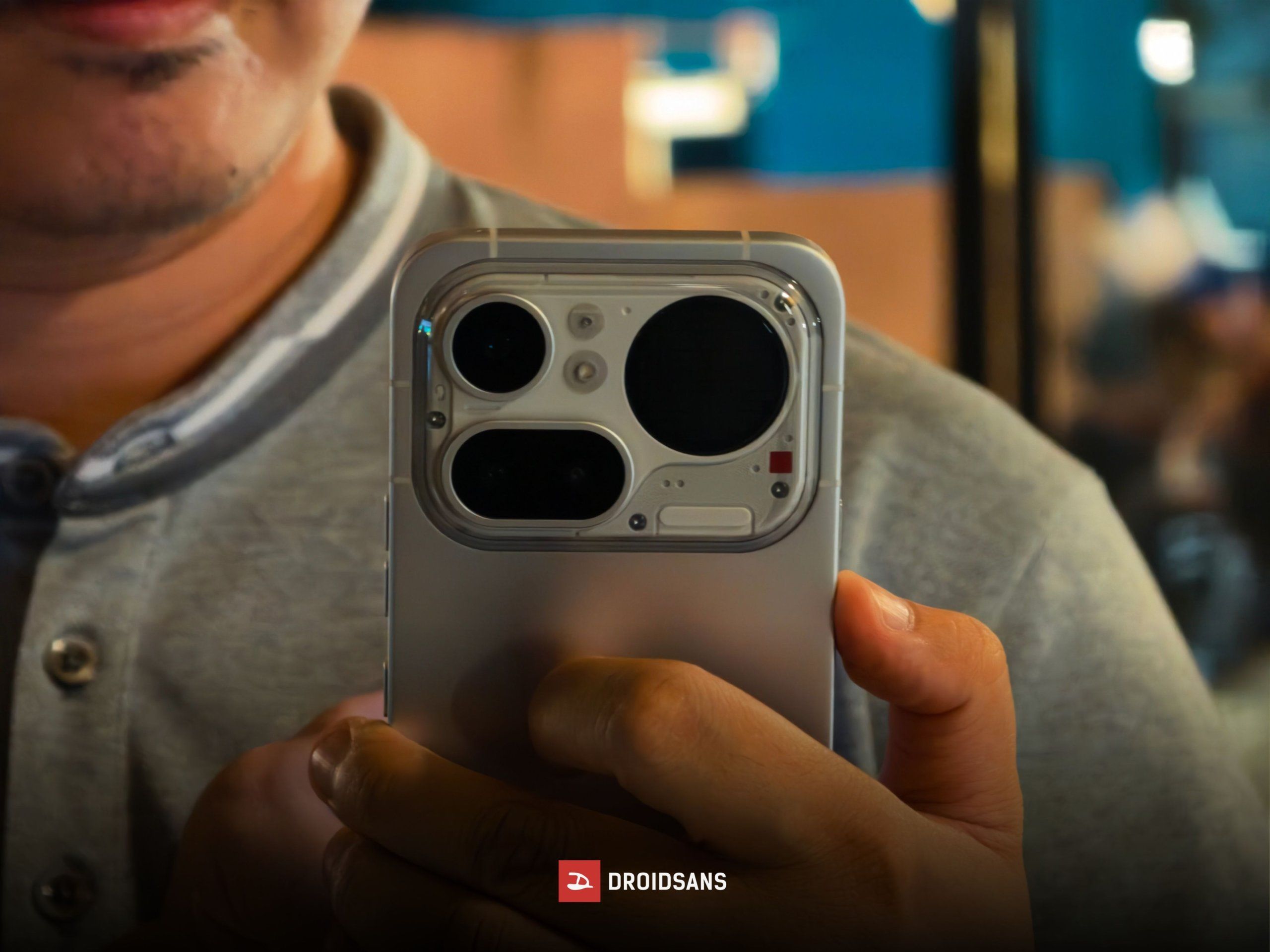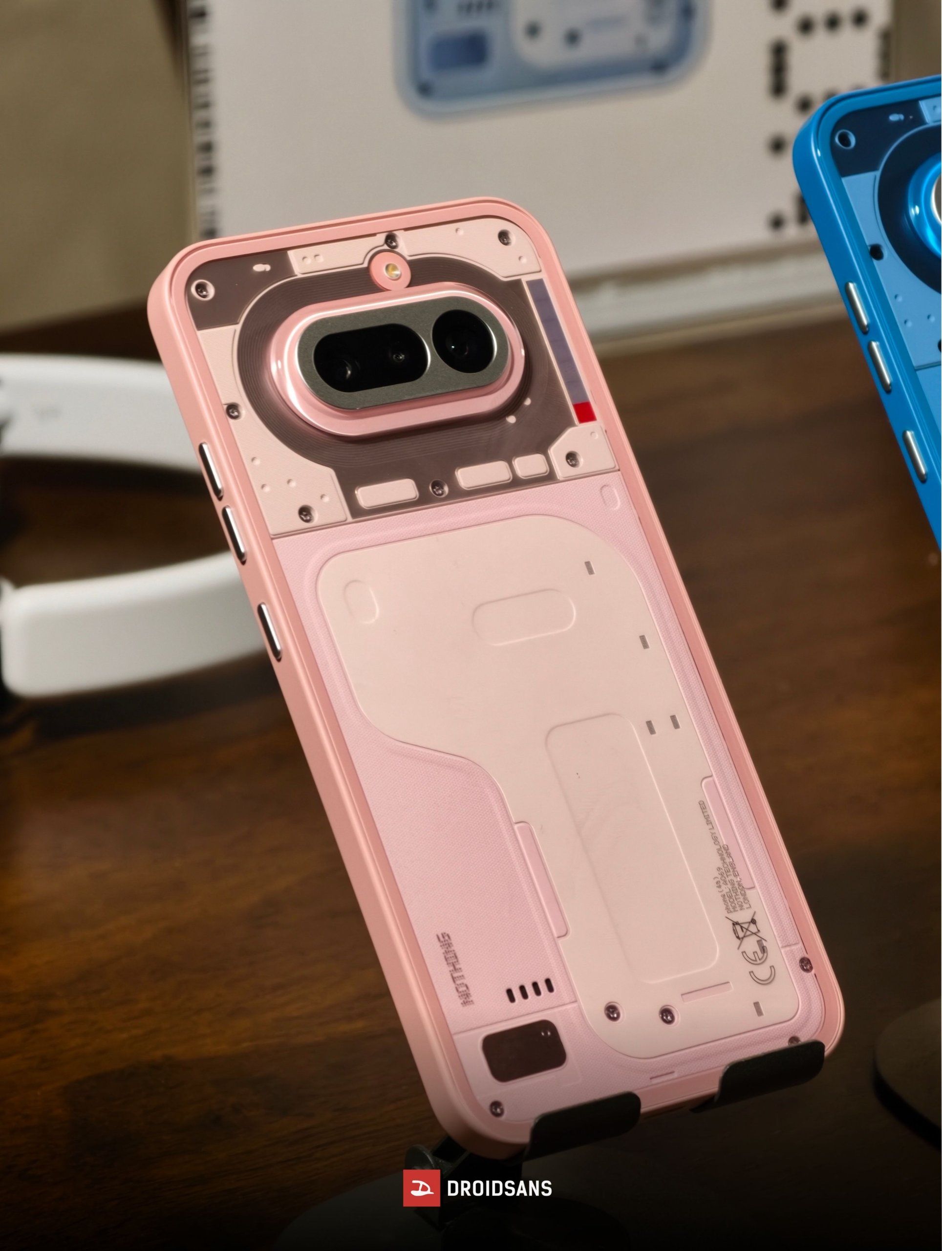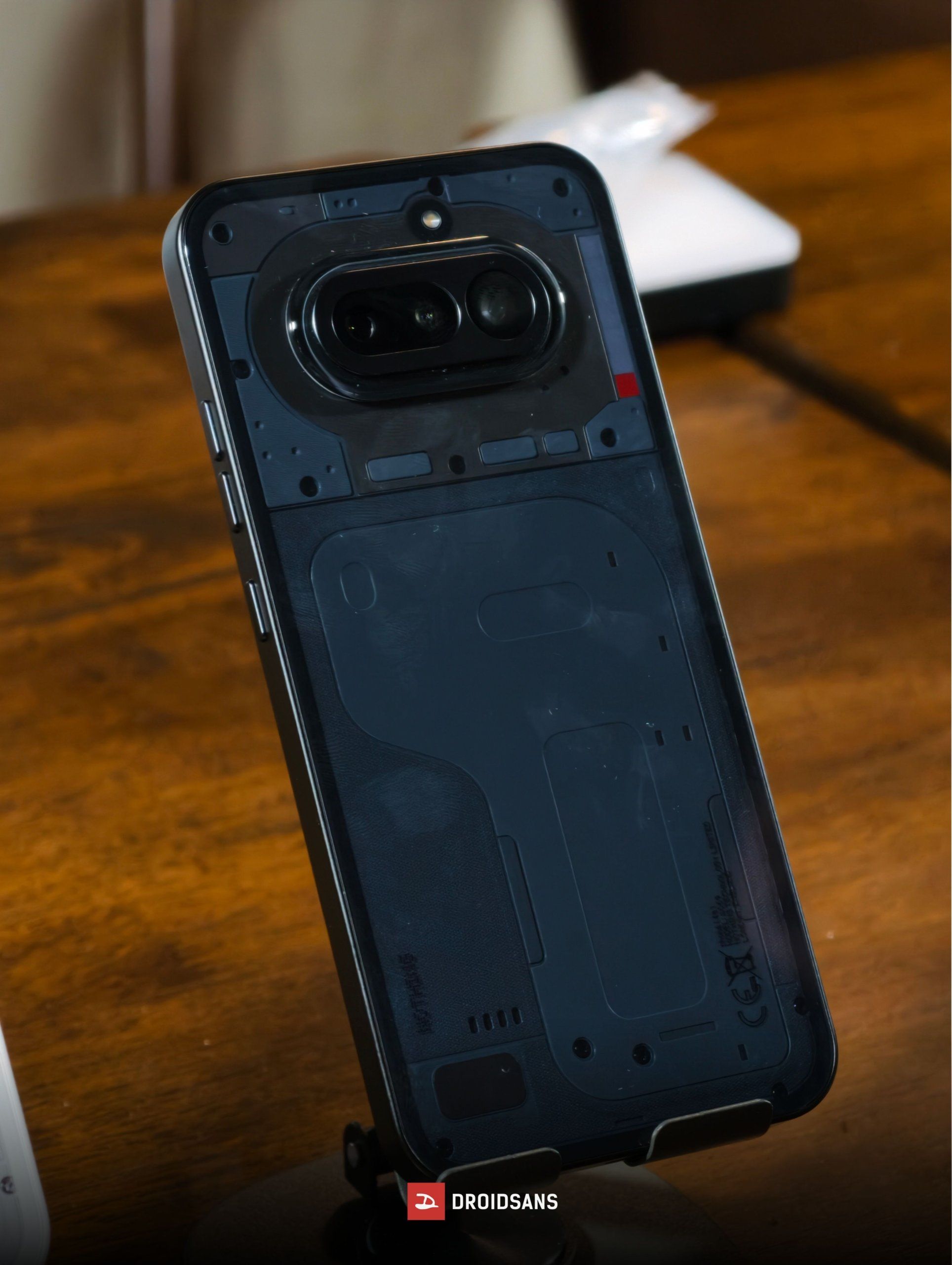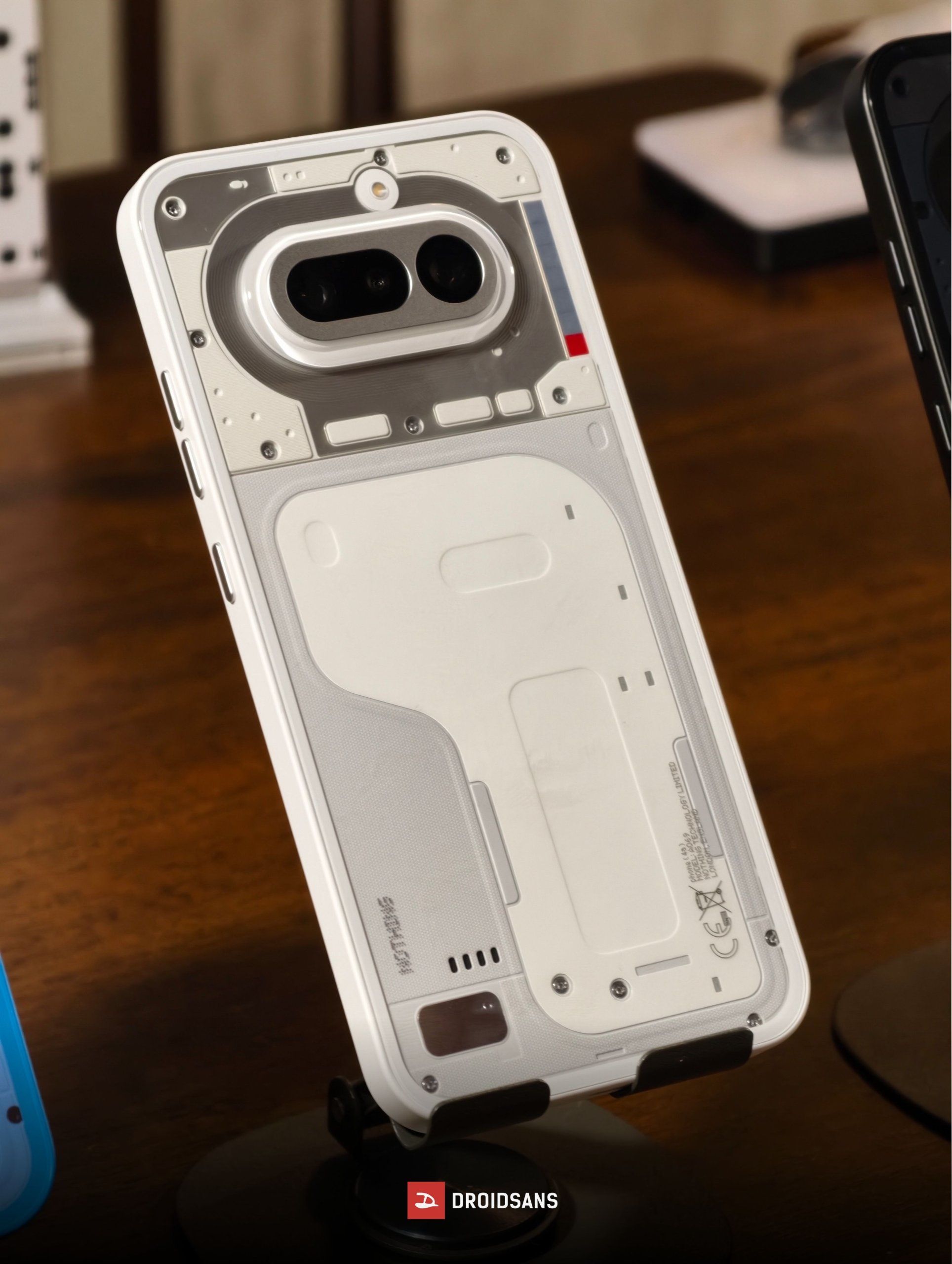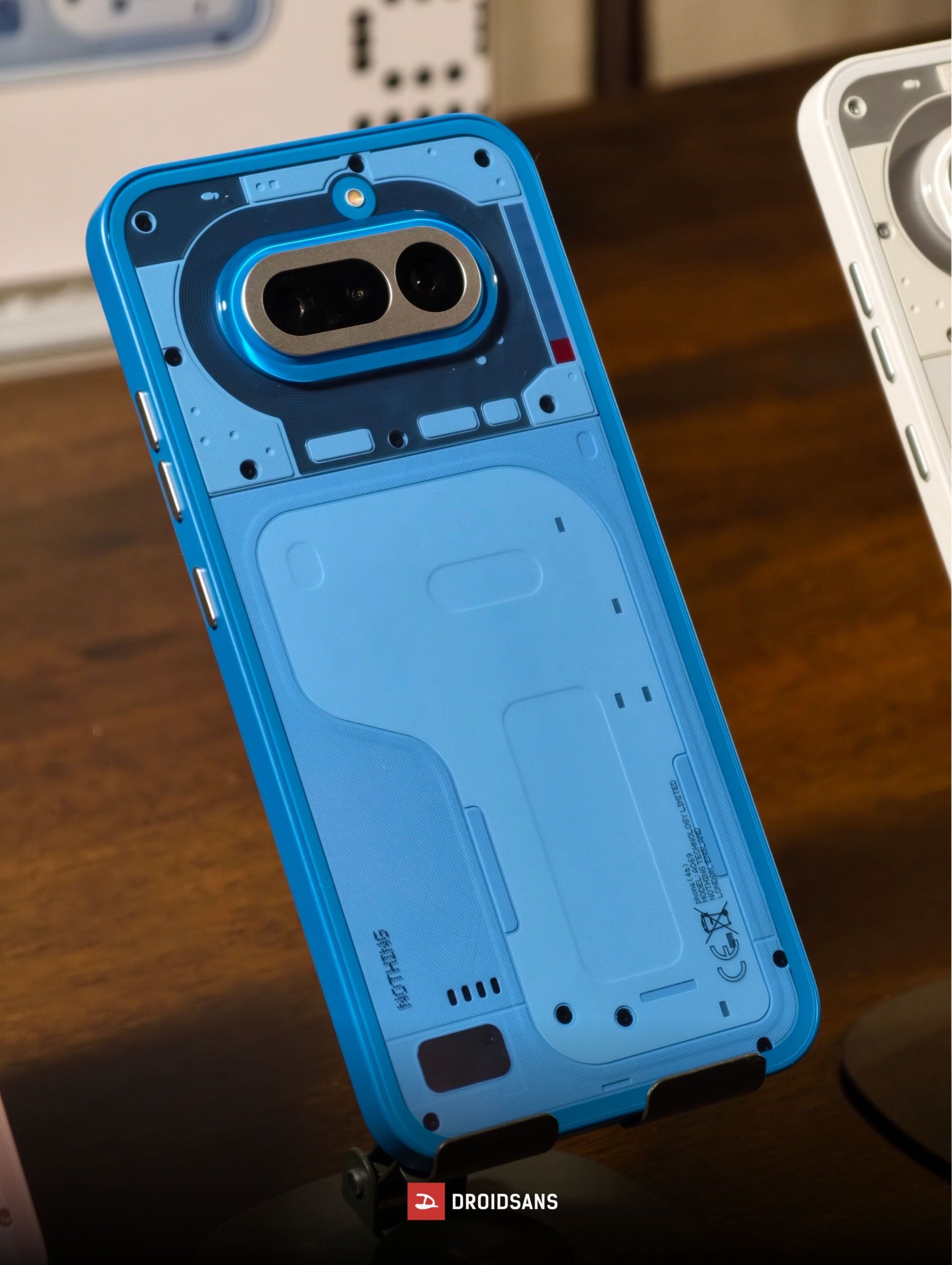 ดีไซน์ฝาหลังโปร่งใสอันเป็นเอกลักษณ์ตามแบบฉบับของ Nothing กล้องหลังสามตัวเรียงเป็นแนวนอน เฟรมเครื่องเป็นพลาสติกแข็งแรง งานประกอบเนี๊ยบจับถือถนัดมือ โดยบริเวณหน้ากากกล้อง ปุ่มเปิด-ปิดเครื่อง และปุ่มเพิ่ม-ลดเสียงอัปเกรดมาใช้วัสดุอย่างโลหะเป็นที่เรียบร้อย