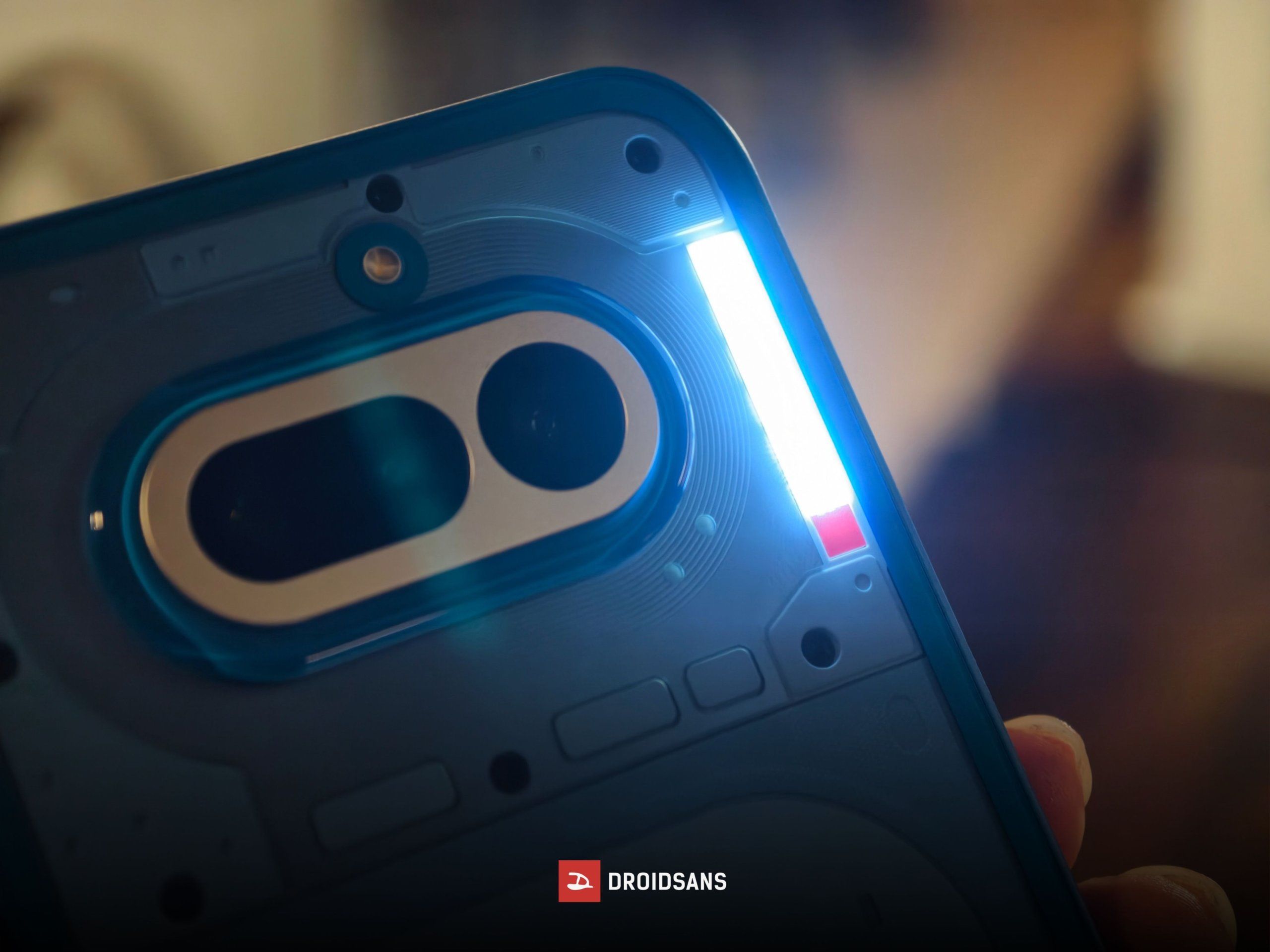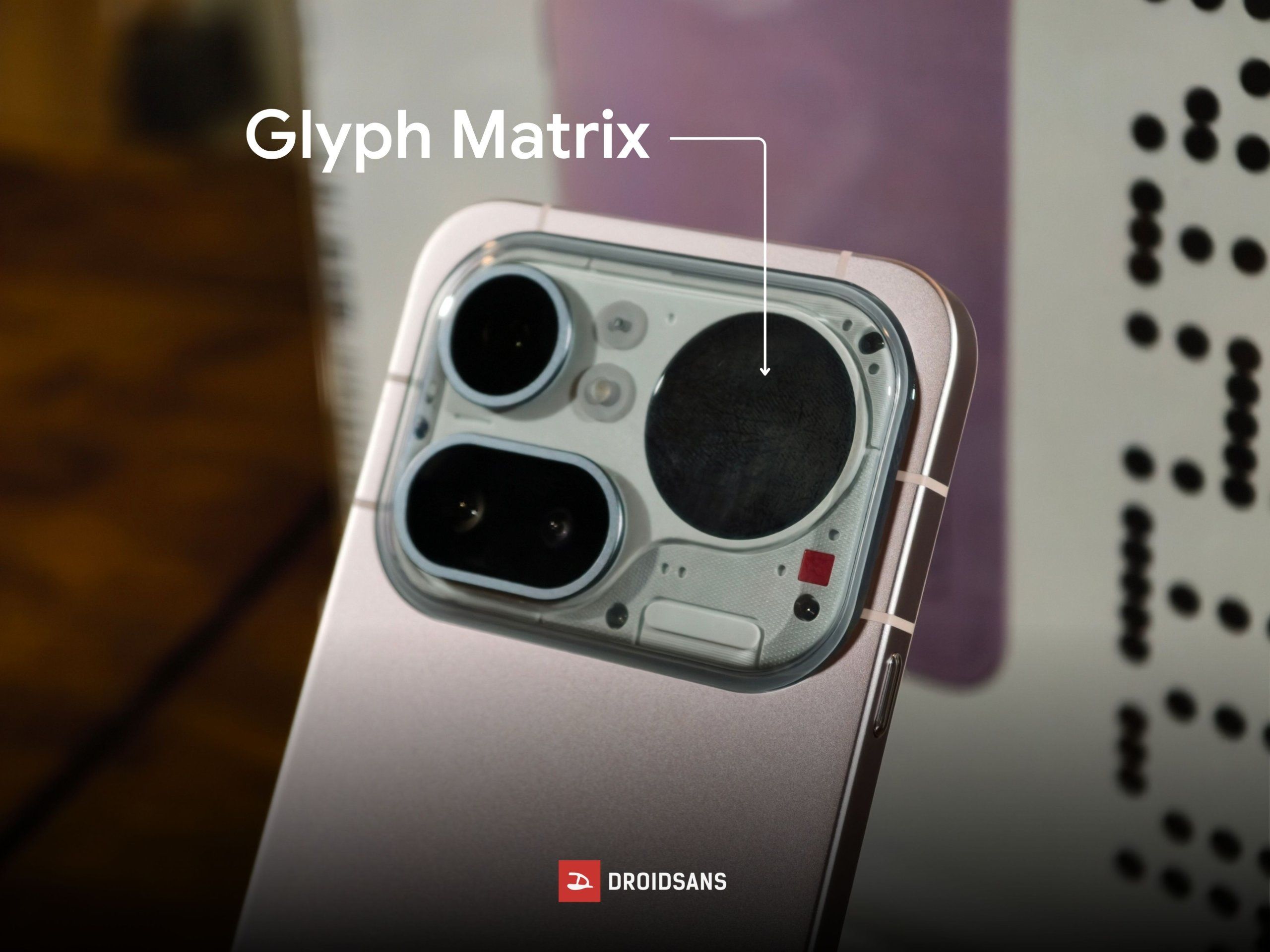 ของใหม่ปีนี้คือ Glyph Bar ที่มาในรูปแบบของจุดสี่เหลี่ยมบริเวณข้างโมดูลกล้อง ฟังก์ชันหลักใช้สำหรับแสดงการแจ้งเตือนหรือสถานะของตัวมือถือแบบเรียลไทม์ (สามารถตั้งค่าเพิ่มเติมได้) โดยจุดสีแดงล่างสุดจะเริ่มทำงานเมื่อเราเริ่ม Record หรือเข้าสู่โหมดบันทึกวิดีโอ