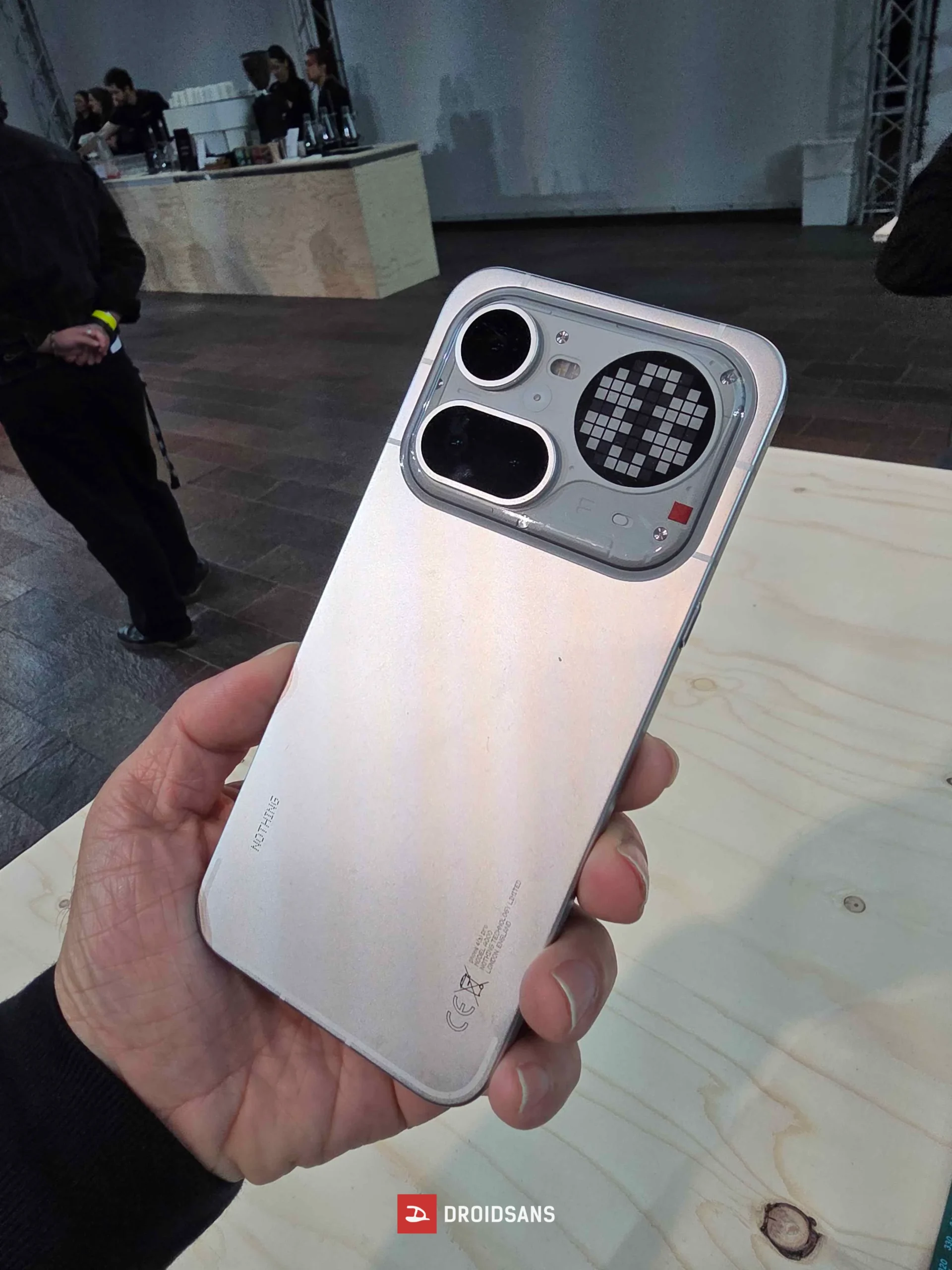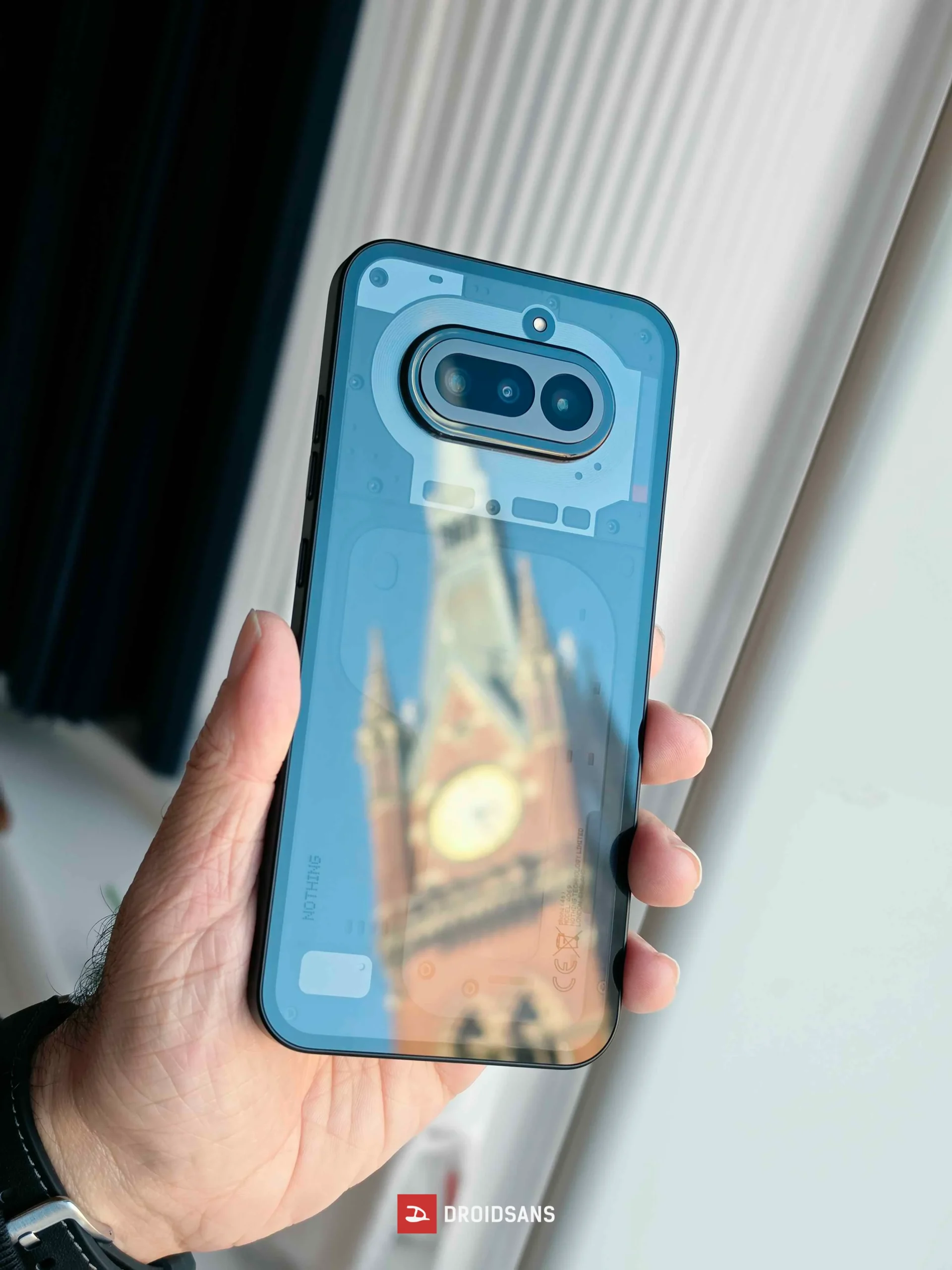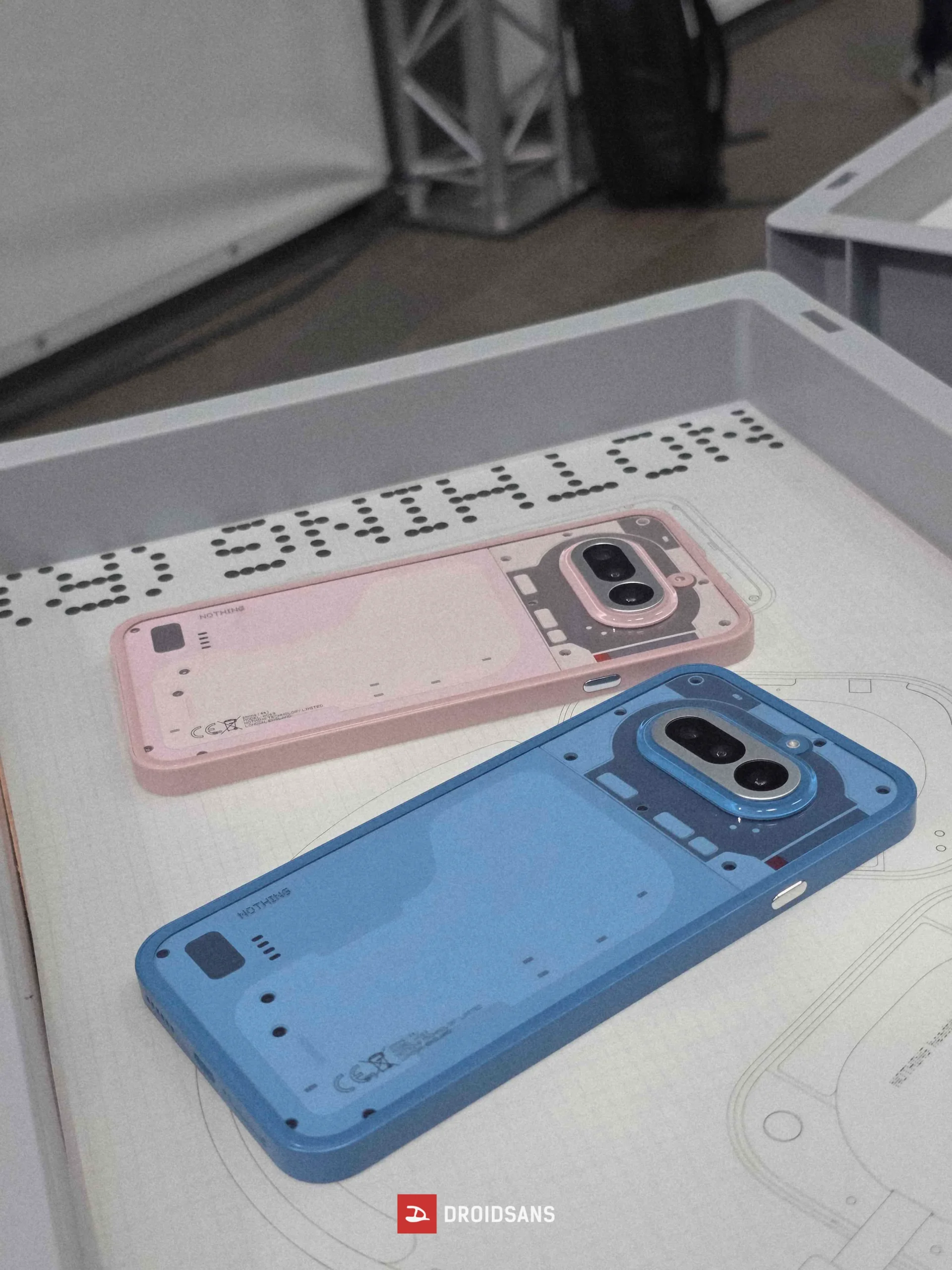 ฝาหลังเป็นกระจกใส Panda Glass เผยให้เห็นโครงสร้างภายในตามเอกลักษณ์ของ Nothing แต่มีการเพิ่มส่วนประกอบที่เป็นโลหะเข้ามาด้วย เพื่อยกระดับความทนทานให้ตัวเครื่อง เช่น โมดูลกล้องหรือปุ่มกด จับคู่กับมาตรฐานการทนน้ำทนฝุ่น IP64