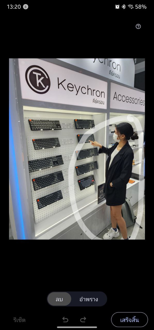เข้าแอป Gallery > เลือกภาพที่ต้องการ > กดสัญลักษณ์ดินสอด้านล่าง > เลือกเมนู 3 จุด มุมขวาล่าง > เลือก ตัวลบวัตถุ / Object eraser จากนั้นลากเส้นล้อมรอบวัตถุที่ต้องการลบ จากนั้นกดลบซะ