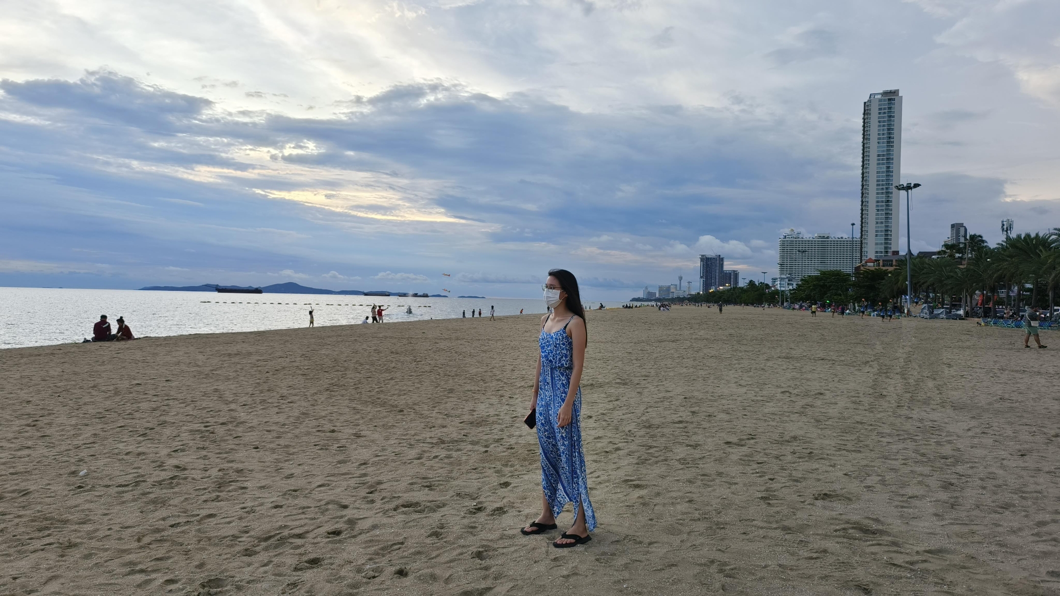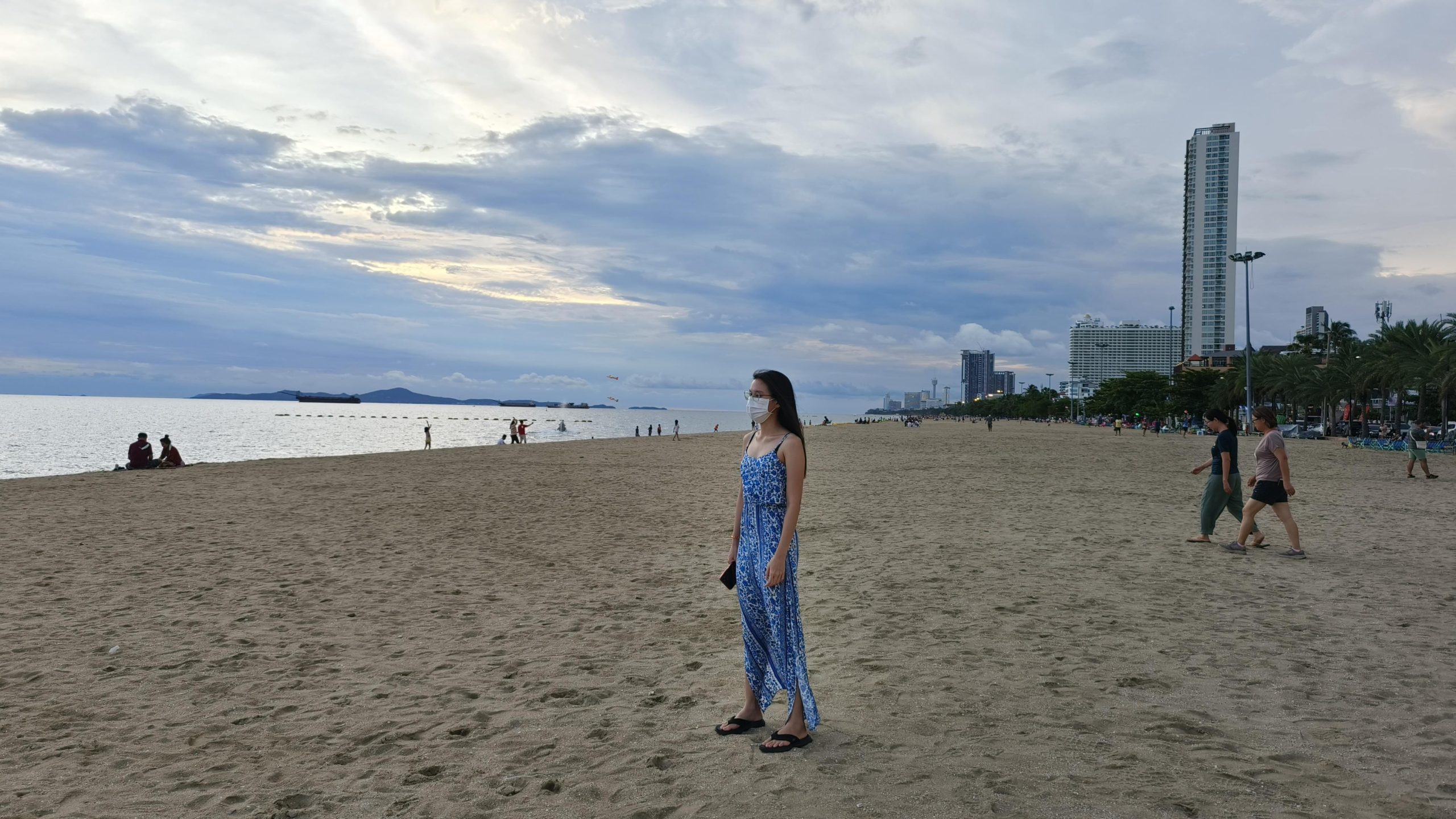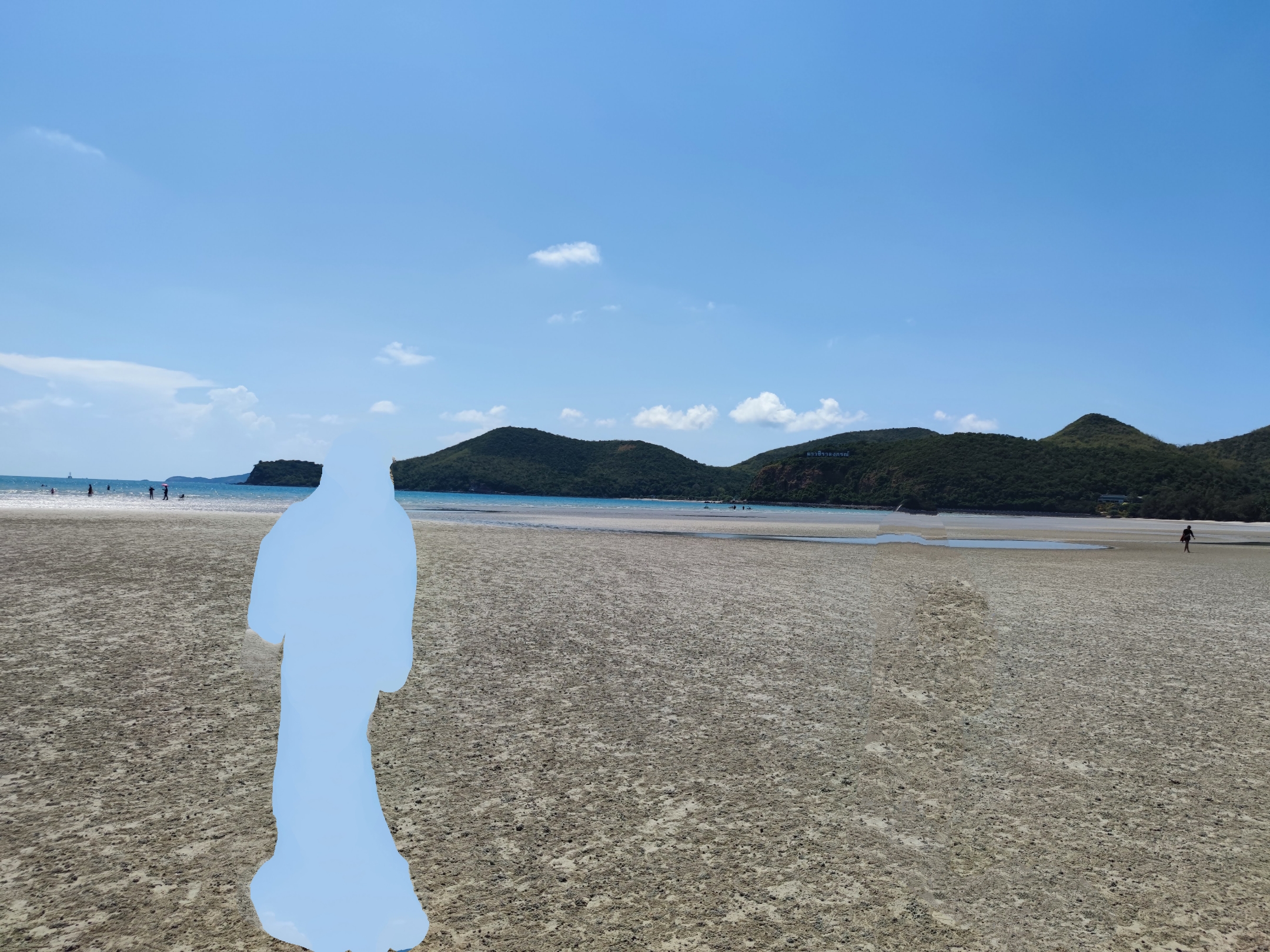 ลองลบภาพคนที่อยู่ใกล้เข้ามาอีก คราวนี้ดูจะง่ายหน่อย เพราะคนที่ต้องการลบอยู่บนพื้นหลังที่เป็นชายหาดมีสีเดียวเรียบ ๆ จะมีแค่ตรงส่วนหัวที่เลยขึ้นไปอยู่บริเวณที่มีสีต่างจากตรงชายหาด ภาพนี้ของ Samsung กับ Google Photos ลบได้ค่อนข้างเนียนอยู่ ส่วน OPPO, vivo, Xiaomi แม้จะดูเนียนแต่บริเวณที่ลบคนออกยังสังเกตเห็นร่องรอยได้แบบราง ๆ แม้จะไม่ได้เพ่งมาก