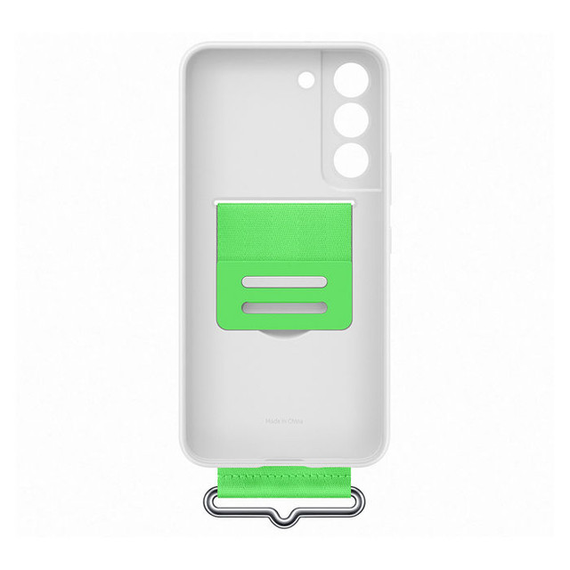 เคสถัดมาเป็นแบบมีสายคาดด้านหลังสำหรับให้เอามือสอดเข้าไปได้ (เทรนด์นี้เริ่มมากับ Galaxy Z Flip3) แต่เท่าที่มีภาพหลุดออกมาตอนนี้จะเป็นของรุ่น Galaxy S22 และ S22+ และมีแค่ตัวเคสสีขาว + สายคาดสีเขียวเท่านั้น