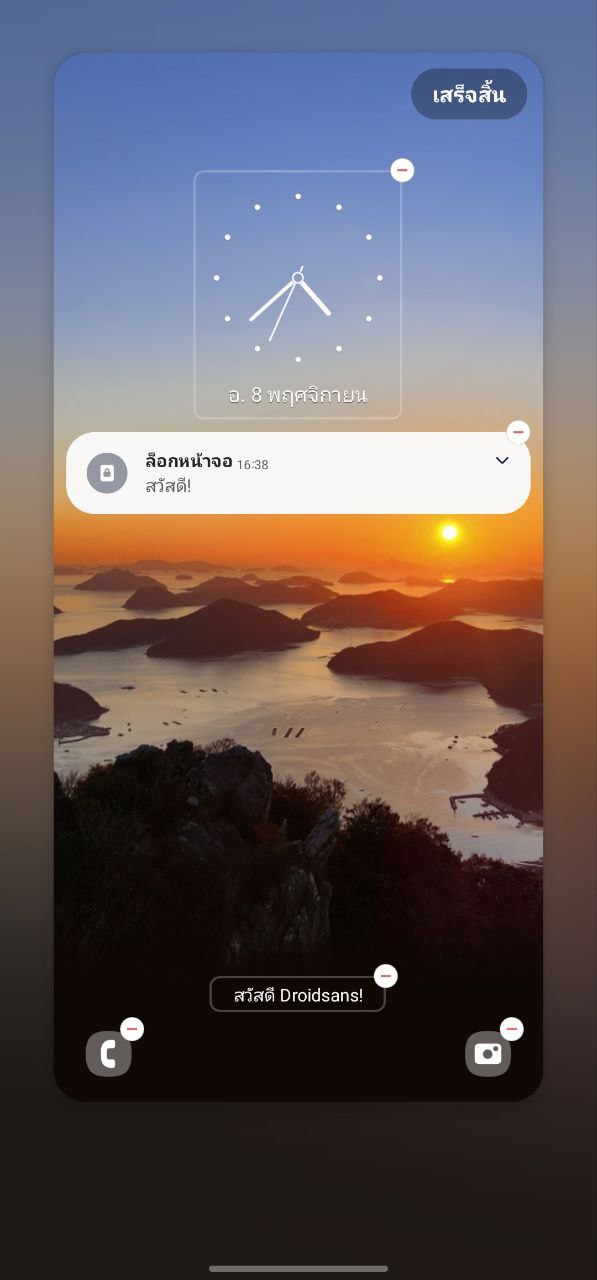 ตัวองค์ประกอบอย่างนาฬิกา แถบแจ้งเตือนสถานะ และตัวหนังสือใส่รายละเอียดเจ้าของ ทั้งหมดนี้ก็ไปกดปรับได้ตามความต้องการแล้วด้วย