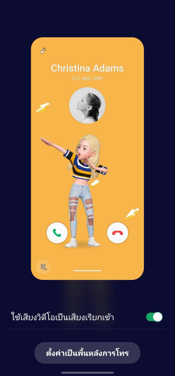 ตอนนี้เวลาเข้าไปตั้งค่ารายชื่อผู้ติดต่อ จะมีตัวเลือก “พื้นหลังการโทร” ให้เราไปตั้งค่าได้ว่าเวลาคนไหนโทรมาแล้วจะขึ้นพื้นหลังแบบไหน ทำให้จำได้ว่าใครโทร นอกจากนี้ยังเลือกตัว AR ที่เราสร้างขึ้นมาเพื่อเป็นวิดีโอตอนโทรเข้าได้ด้วยนะ