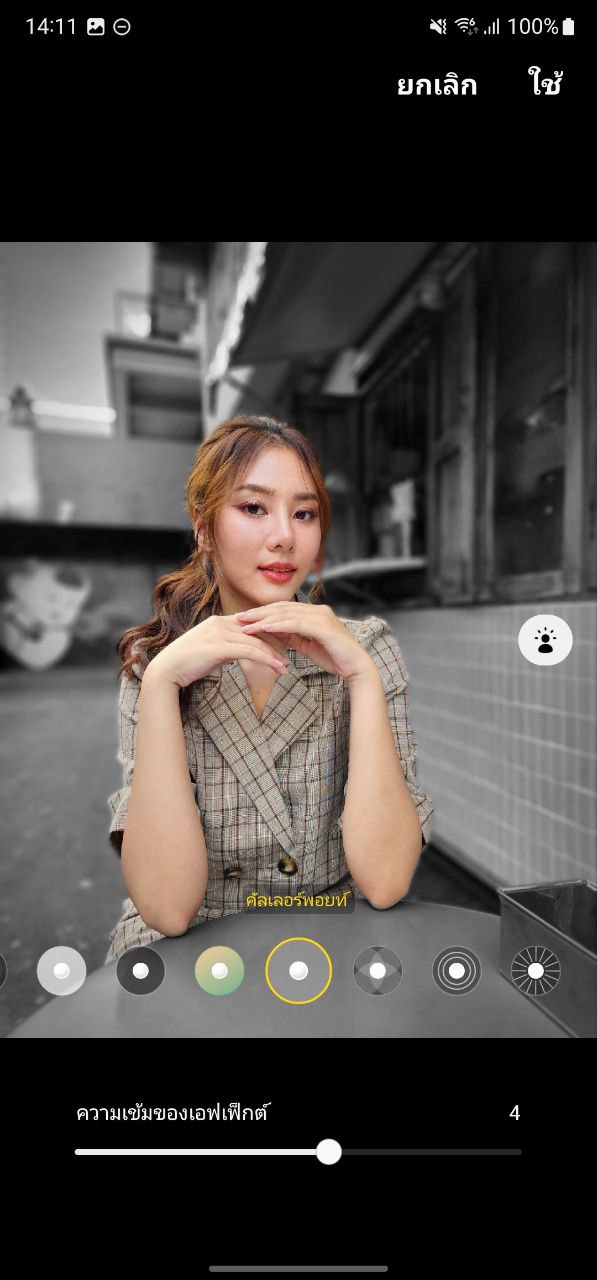 หลังเราถ่ายภาพ Portrait มาแล้ว เปิดเข้าในแอป Gallery จะมีตัวเลือก “เปลี่ยนเอฟเฟกต์พื้นหลัง” ให้เราเข้าไปเลือกได้หากอยากเปลี่ยนแสงสี รูปแบบพื้นหลัง พร้อมเลือกระดับความเข้มข้นของเอฟเฟกต์ได้ด้วย