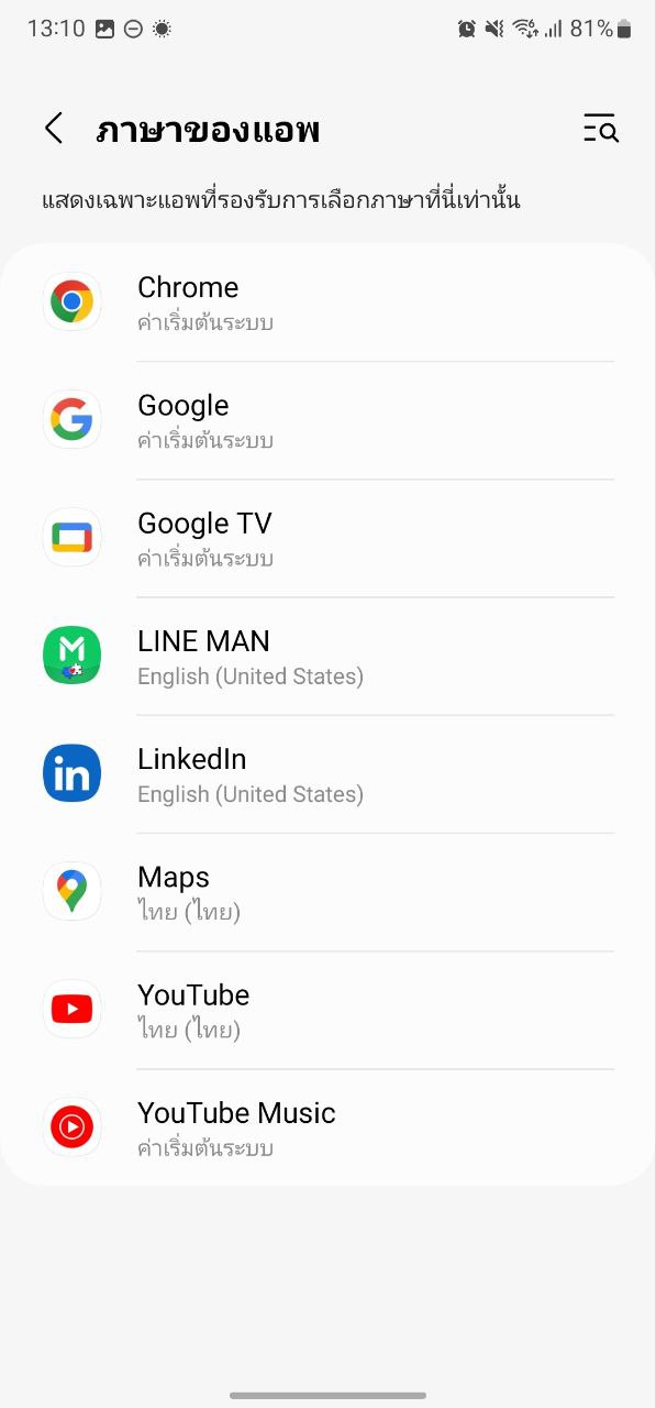 อีกหนึ่งฟีเจอร์ที่คาดไม่ถึง แต่พอมีให้ใช้ก็ดีเหมือนกัน จากที่ปกติแล้วเราตั้งค่าเครื่องให้เป็นภาษาไหน แอปต่าง ๆ ในมือถือก็จะเปลี่ยนภาษาตามไปด้วย แต่ฟีเจอร์ตั้งค่าภาษารายแอป ก็จะเป็นหน้าให้เราเลือกได้ว่าจะให้แอปพลิเคชันไหน ขึ้นแสดงภาษาอะไร แต่ตอนนี้ยังมีแอปไม่กี่ตัวที่รองรับฟีเจอร์นี้ ต้องรอให้ผู้พัฒนาใส่ฟังก์ชั่นรองรับมาก็จะได้ตั้งค่ากันกับแอปที่หลากหลายมากขึ้น