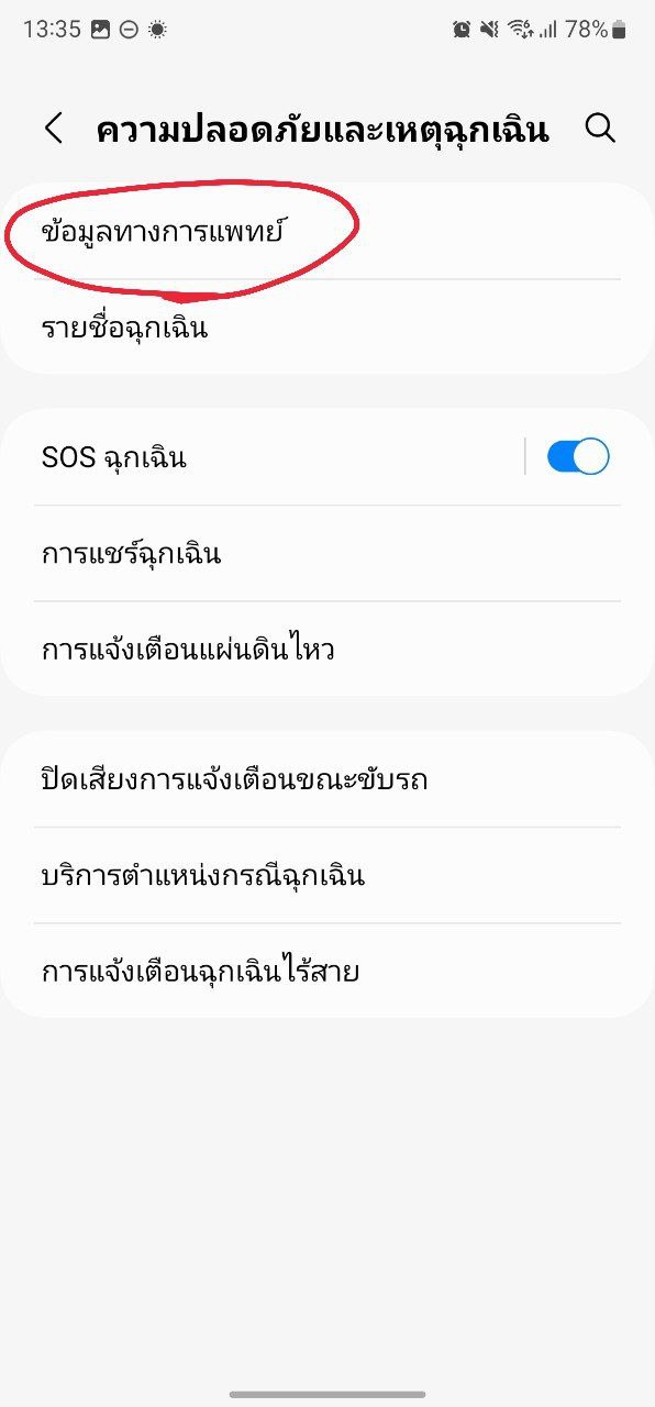 หากเราเกิดอุบัติเหตุไม่ได้สติ หรือไม่สามารถให้ข้อมูลเกี่ยวกับตัวเราได้ การใส่ข้อมูลต่าง ๆ เอาไว้ในมือถือก็จะช่วยให้แพทย์หรือพยาบาลรับรู้ได้ว่าเรามีโรคประจำตัวอะไร จะได้ทำการรักษาได้อย่างเหมาะสม ให้เข้าไปที่หน้า “ความปลอดภัยและเหตุฉุกเฉิน” แล้วเลือกเมนู “ข้อมูลทางการแพทย์” จะมีให้เรากดกรอกข้อมูล อย่างชื่อ โรคประจำตัว อาหารและยาที่แพ้ กรุ๊ปเลือด ที่อยู่ หรือสถานะการเป็นผู้บริจากอวัยวะ เป็นต้น