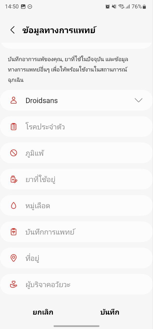 ใส่ช้อมูลทางการแพทย์ของเรา