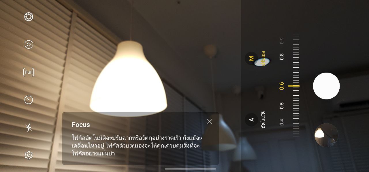 อีกปัญหาเวลาถ่ายกล้องอยู่คือมือไม่ว่างมาคอยกดซูมระยะต่าง ๆ ตอนนี้เวลาถ่ายอยู่ก็สามารถใช้นิ้วแตะลากซูมได้เลย ตรงแถบการซูมขอบด้านล่างแบบนี้