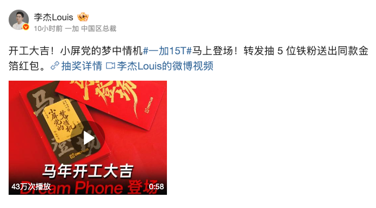 Li Jie Louis ประธาน OnePlus ของประเทศจีนได้ปล่อยคลิปต้อนรับวันทำงานหลังตรุษจีน ด้วยการแจกซองอั่งเปาที่ด้านในมีแผ่นทองประกาศว่ามือถือดีไซน์กะทัดรัดในฝันสำหรับคนชอบใช้หน้าจอเล็ก กำลังจะเปิดตัวในเร็ว ๆ นี้ พร้อมติดแฮชแท็กว่า OnePlus 15T อีกด้วย