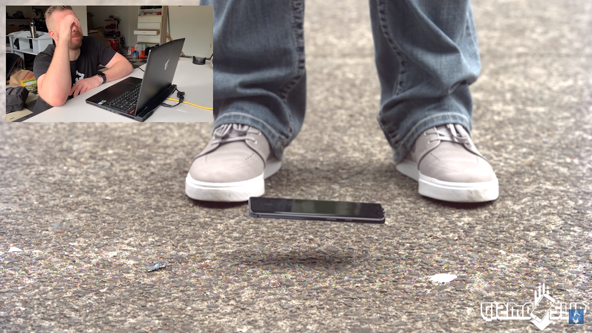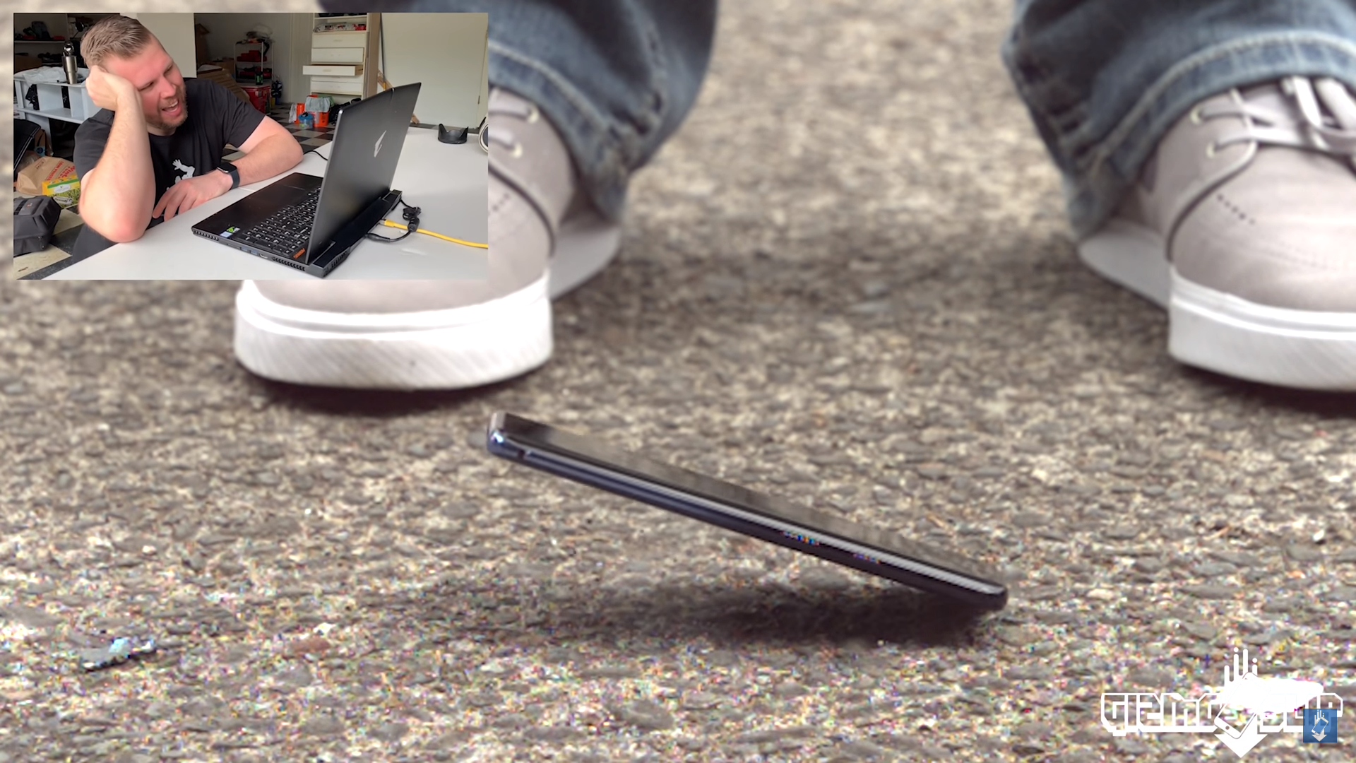 ซึ่ง YouTuber คนนี้เองก็ได้ทดสอบทำหล่นแบบนี้อยู่หลายรอบเลยทีเดียว โดยที่ผลลัพธ์ก็ยังออกมาว่าไม่ว่าจะทำหล่นท่าไหนซักกี่รอบ กล้องป๊อปอัพของ OnePlus 7 Pro ก็ยังไม่พังสักที! จนกระทั่งเขาเอะใจขึ้นมา เอ.. หรือว่าต้องเอาแบบหลังลงกันนะ ตัวกล้องจะได้กระทบกับพื้นโดยตรงเลย ไม่รอช้า เขาก็ได้ทำการทดสอบวิธีการนี้ดู จะเป็นยังไง มาลุ้นไปพร้อมๆ กันดีกว่า