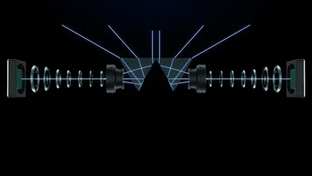 นอกจากนี้ เซนเซอร์ 2 ชุดที่ทำงานร่วมกันก็น่าสนใจและเก๋ไก๋ไม่เบา มีการจัดวางในแนวตั้ง หันหน้าเข้าหากัน รับภาพด้วยปริซึมที่หักเหแสงในมุม 90 องศา จากนั้นนำมาต่อกันเป็นภาพแบบพาโนรามา 1 ใบแบบเรียลไทม์ มุมกว้าง 140 องศา