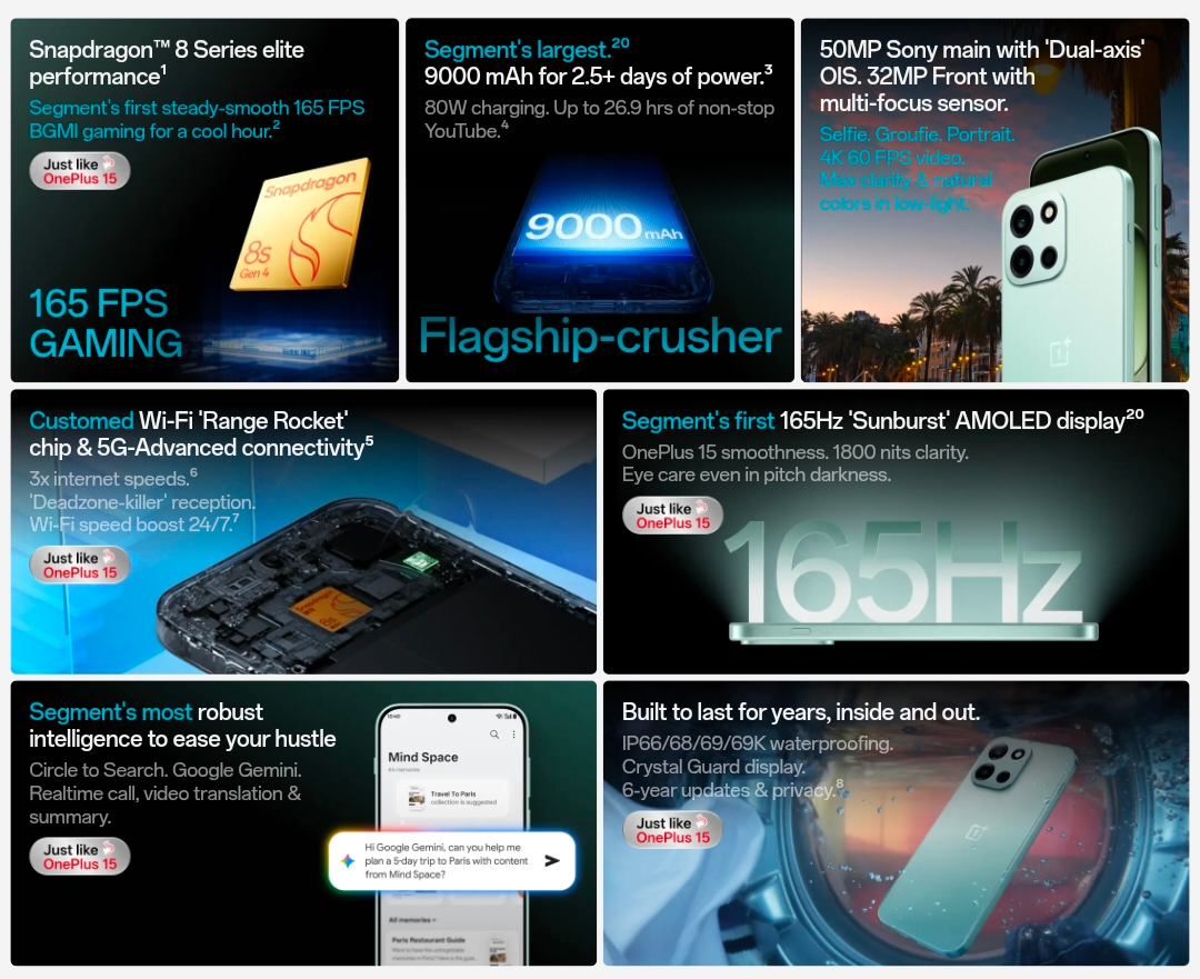 - ระบบปฏิบัติการ : OxygenOS 16.0 บนพื้นฐาน Android 16