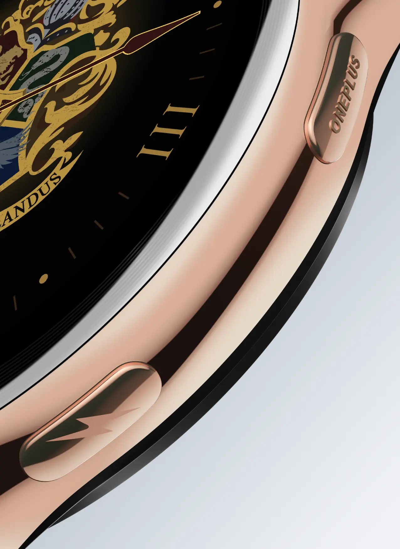 OnePlus Watch Harry Potter Limited Edition เป็นรุ่นพิเศษของสมาร์ทวอทช์ OnePlus Watch ที่เปิดตัวไปเมื่อเดือนมีนาคมที่ผ่านมา โดยมากับหน้าปัดจอ AMOLED ขนาด 1.39 นิ้ว ครอบด้วยกระจกขนาด 46 มม. โค้งสวยงามไปกับตัวบอดี้ วัสดุตัวเครื่องทำมาจากสแตนเลส 316L เกรดเดียวกับที่เอาไปใช้ทำมีดผ่าตัด ซึ่งคราวนี้ใช้สีทองแดงพร้อมกับสายรัดข้อมือหนังสีน้ำตาลให้เข้ากับธีมของ Harry Potter ทำให้มันยิ่งดูคลาสสิกเข้าไปอีก