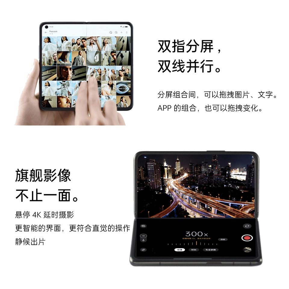 Find N มากับหน้าด้านนอกสัดส่วน 8.4:9 ซึ่งในภาพโปรโมตระบุเอาไว้ว่า สัดส่วนนี้เป็นสัดส่วนทองคำที่แสดงผลได้เต็มตาโดยที่ยังคงสามารถใช้งานได้ด้วยมือเดียว ส่วนกล้องเซลฟีทั้งด้านนอกและด้านในยังเป็นแบบเจาะรูอยู่ ยังไม่ใช่กล้องใต้หน้าจออย่างที่ OPPO เคยนำมาโชว์ให้ดู