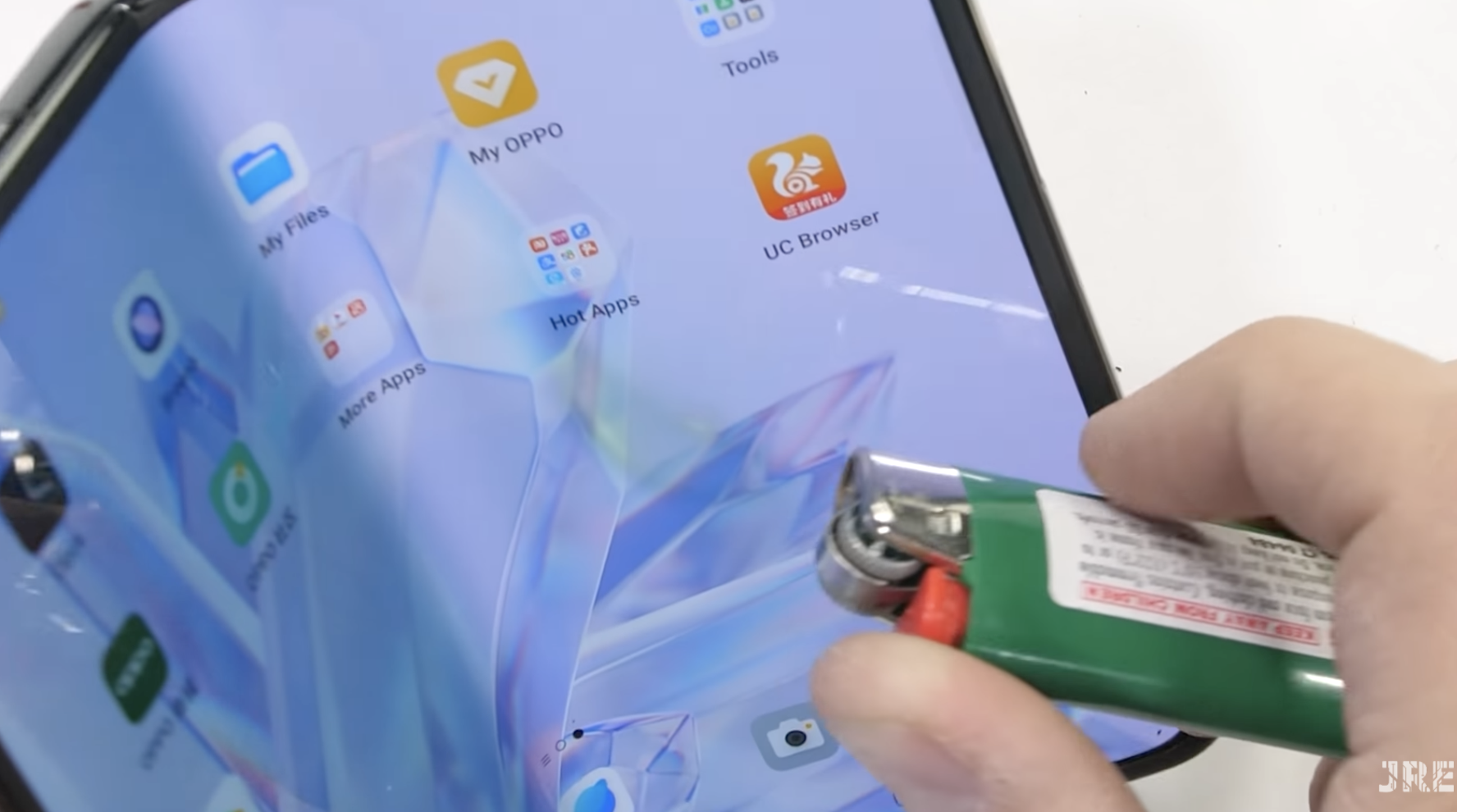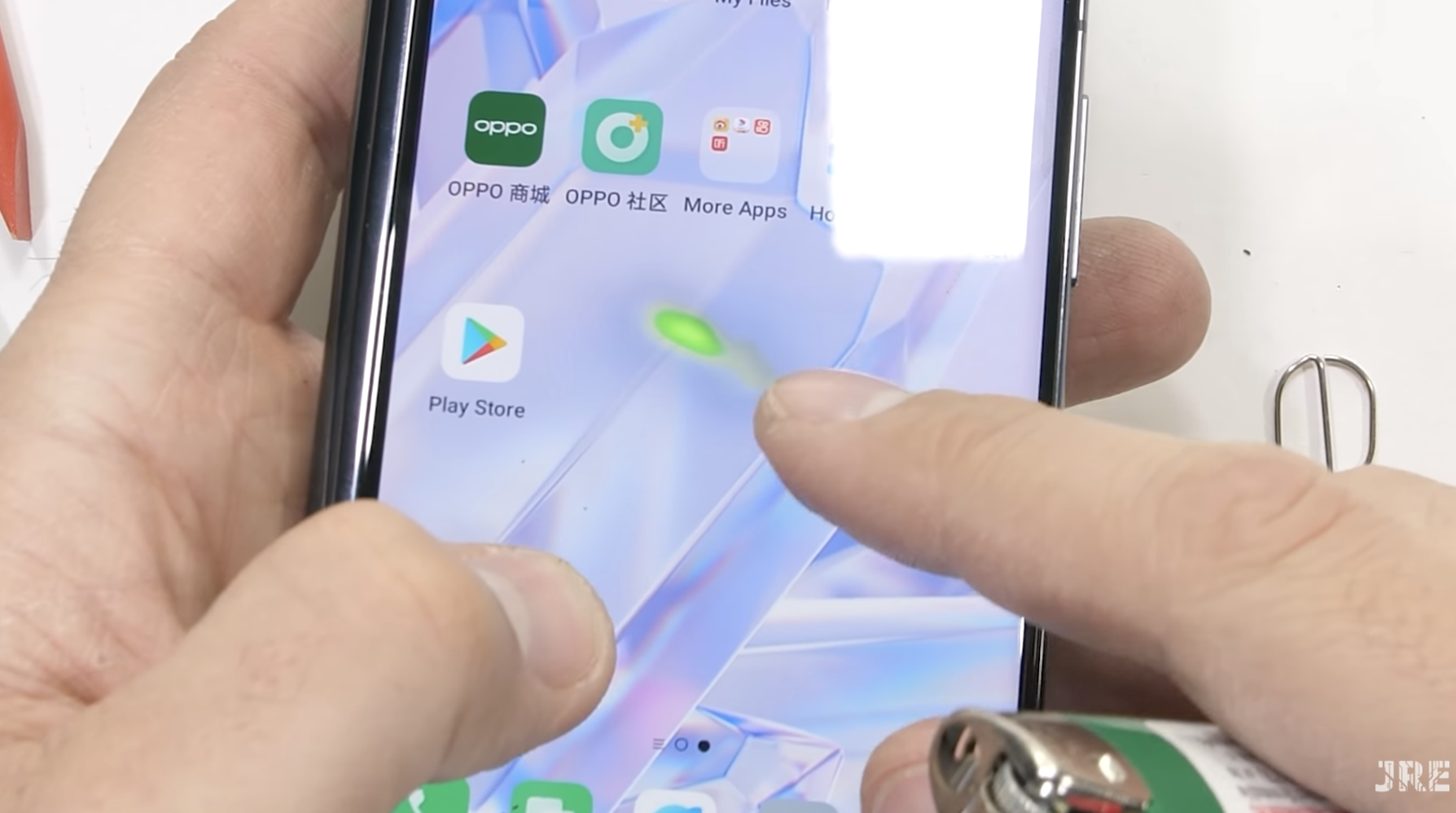 ผลทดสอบไฟลนหน้าจอของ OPPO Find N พบว่าหน้าจอด้านในนั้นสามารถทนความร้อนได้ดีกว่าหน้าจอด้านนอก แทบไม่มีรอยอะไรเลย ในขณะที่ด้านนอกนั้นมีรอยไฟลนแบบชัดเจน แถมไม่หายไปไหนด้วย