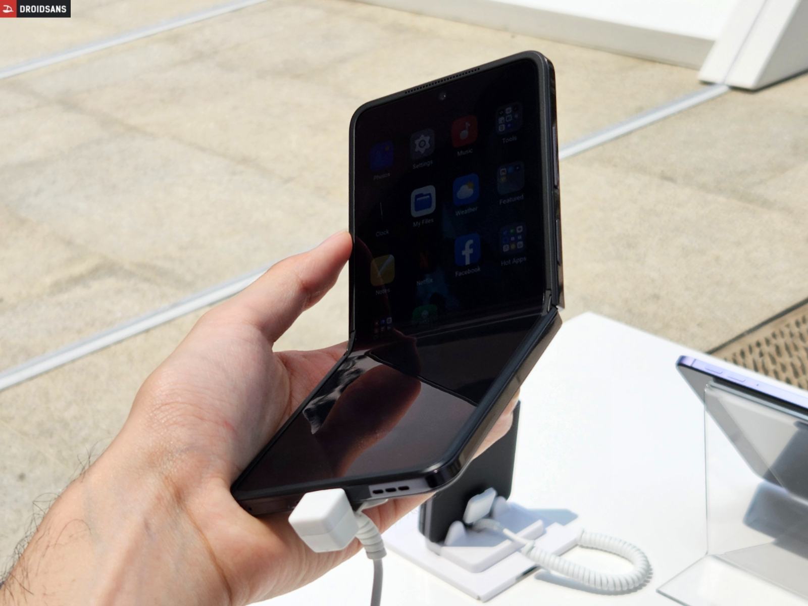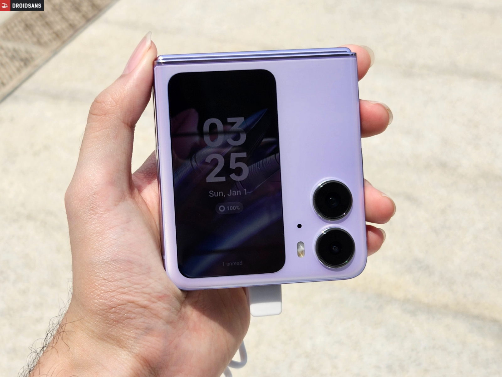 ส่วนจอรองด้านหน้าก็ไม่ใช่เล่น ๆ เพราะมาพร้อมกับจอ OLED 60Hz ขนาด 3.2 นิ้ว ตัวเครื่องใส่ซิม 5G ได้สองซิม