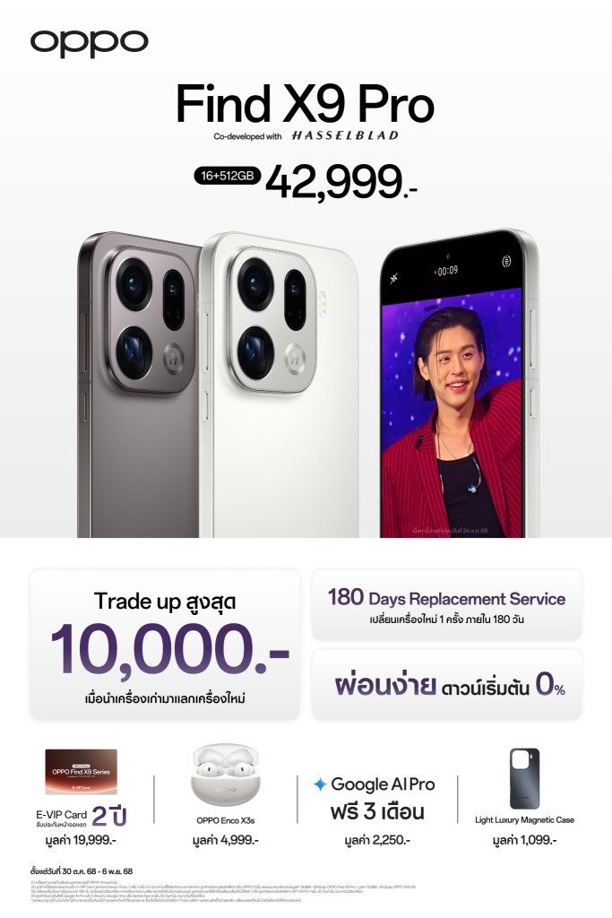 สำหรับผู้อ่านที่ทำการจอง OPPO Find X9 Pro (30 ต.ค. 68 – 6 พ.ย. 68) รับของแถมและสิทธิพิเศษหลายรายการ ได้แก่